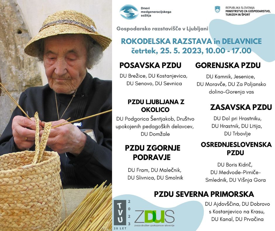 V sredo in četrtek se bo po ljubljanskem Gospodarskem razstavišču sprehodilo staro in mlado iz vse Slovenije. Sprehodite se tudi vi, oglejte si Veliko rokodelsko razstavo izkušenih rokodelk in rokodelcev iz kar 60 društev upokojencev, ter preizkusite svoje ročne spretnosti na kateri izmed njihovih delavnic.