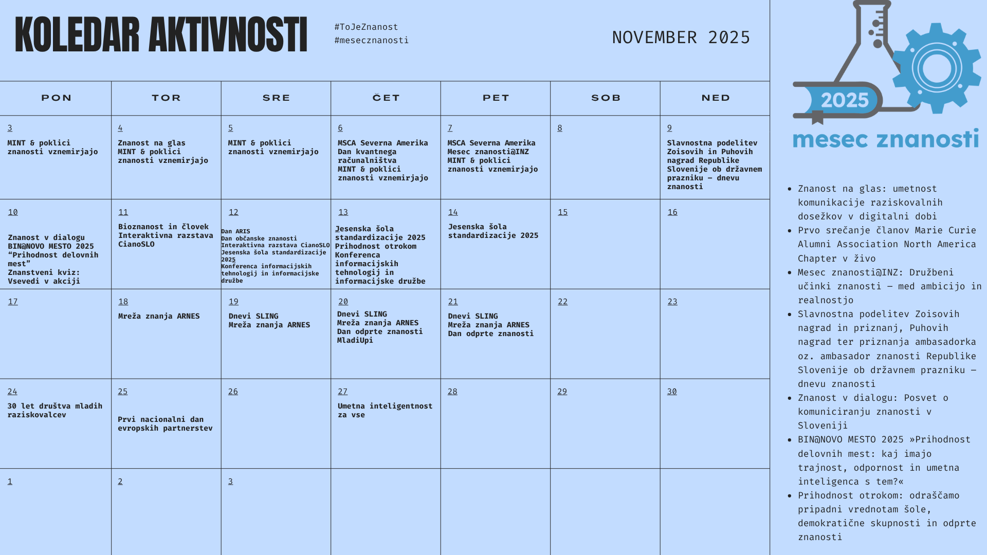 - Obletnica 10. izvedbe Meseca znanosti, december 2025