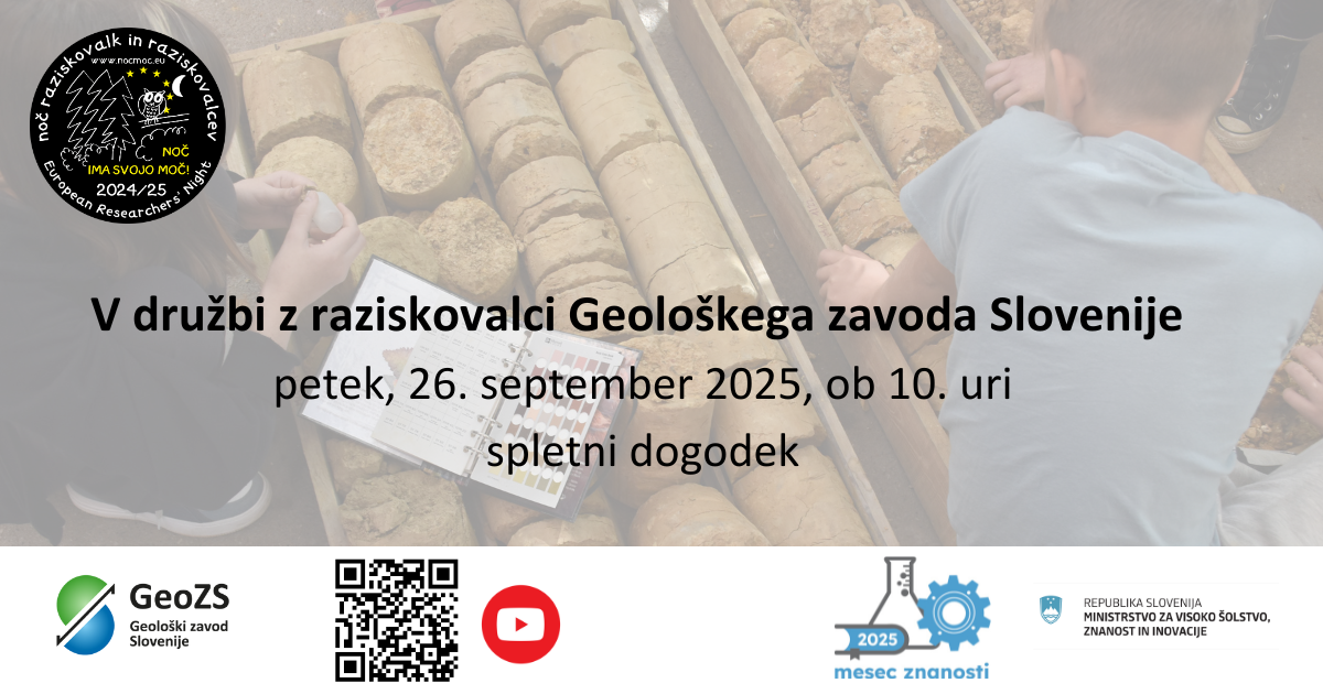 V okviru Meseca znanosti bo v petek, 26. septembra 2025, ob 10. uri potekal spletni dogodek V družbi z raziskovalci Geološkega zavoda Slovenije, ki ga pripravlja Geološki zavod Slovenije v okviru Evropske noči raziskovalk in raziskovalcev.