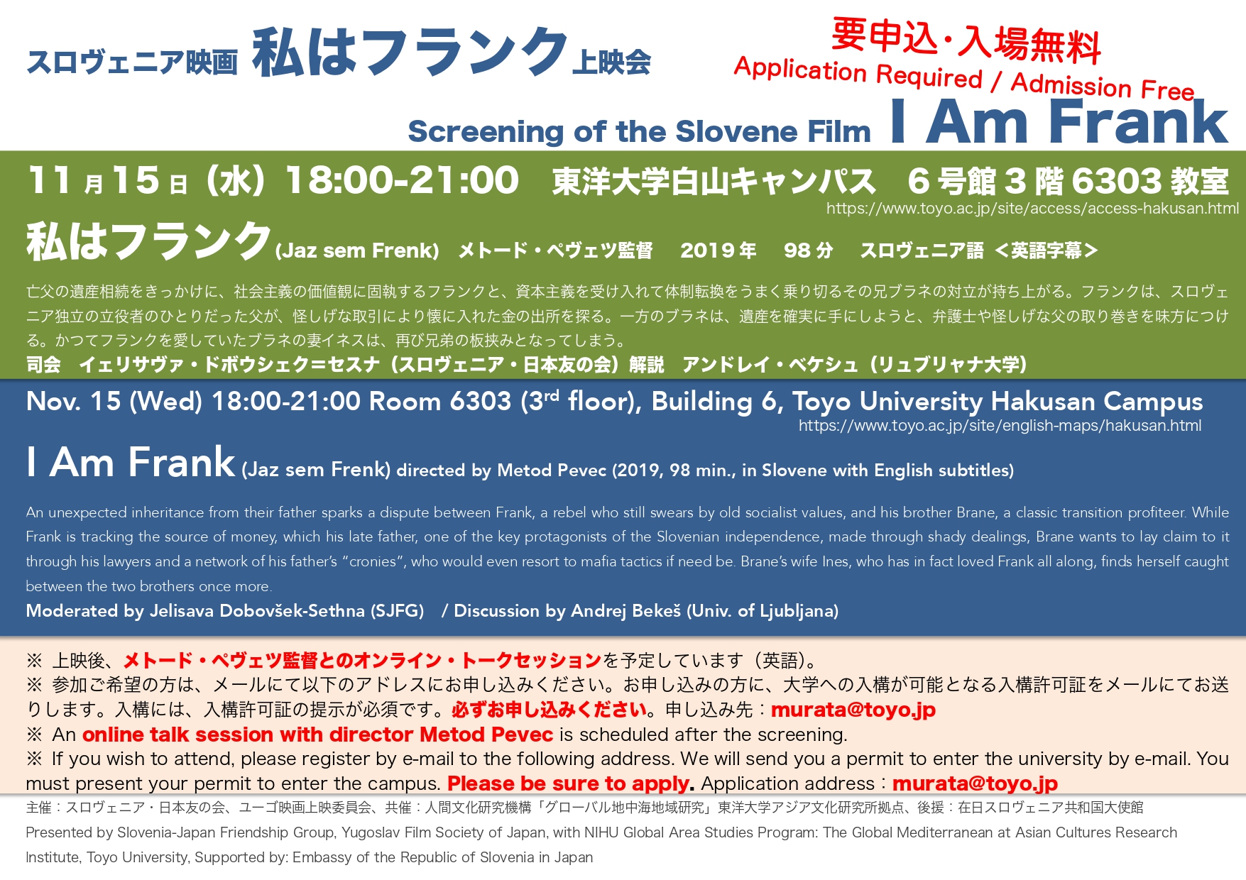 Screening of Slovenian Movie "Jaz sem Frenk" ("I am Frank")