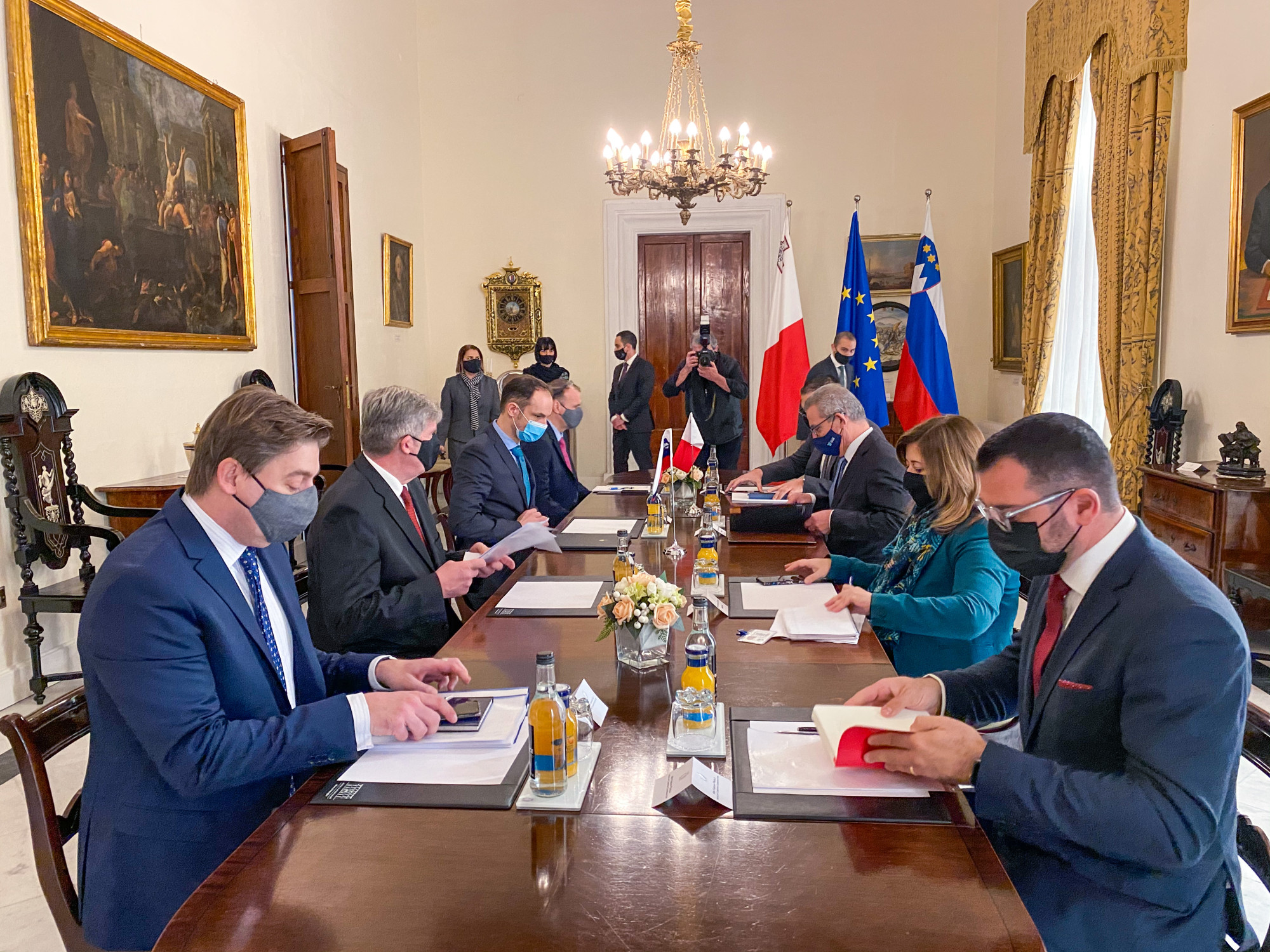 Minister Logar was also received by the President of Malta, George Vella. The two agreed that Slovenia and Malta have developed successful cooperation and share similar views on many European, regional, and global issues. They also discussed the availability and distribution to EU member states of sufficient quantity of vaccines to contain the COVID-19 epidemic.