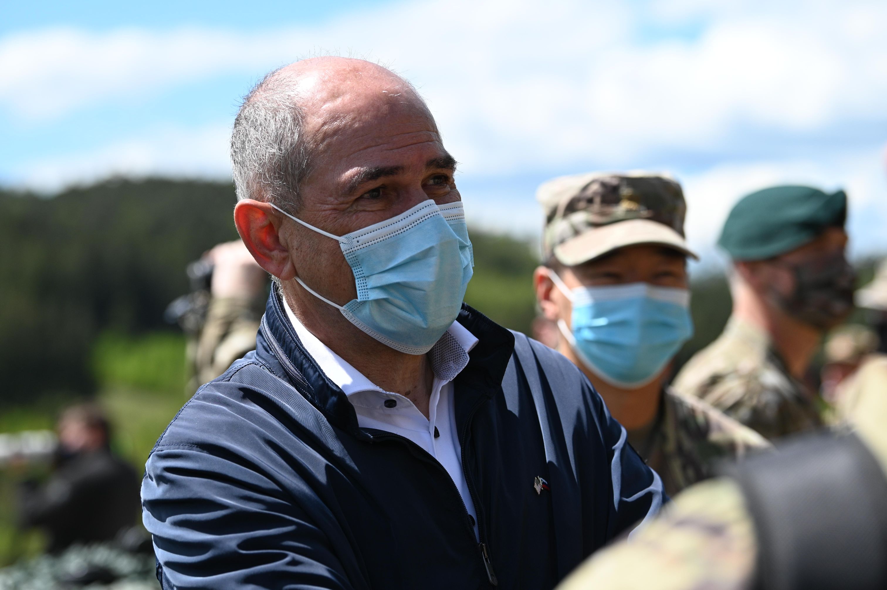 Prime Minister Janez Janša attending military training demonstrations as part of Exercise Defender Europe 2021