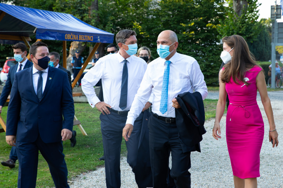 Prime Minister Janez Janša and his wife Urška Bačovnik Janša today attended the main ceremony to mark the Day of the Unification of Prekmurje Slovenes with the Mother Nation, which took place in the castle courtyard in Beltinci.