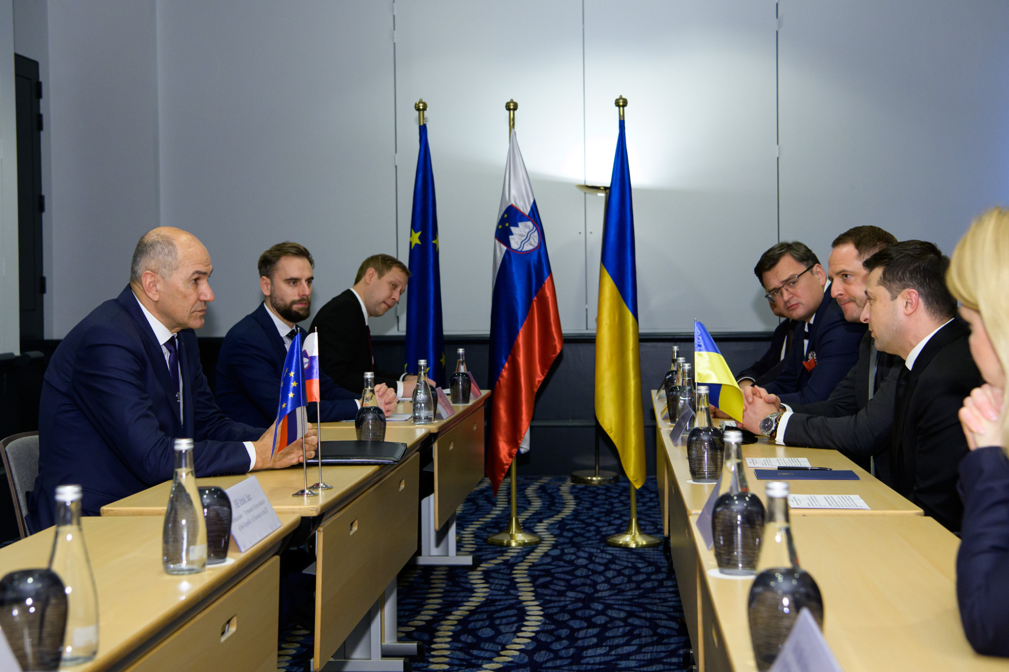 After the working lunch, the Prime Minister met with the President of Ukraine, Volodymyr Zelenskiy. The Slovenian Prime Minister and the Ukrainian President signed the joint declaration on the European perspective of Ukraine. In bilateral talks, they exchanged views on the situation in Ukraine and the EU's relations with the Eastern Partnership.