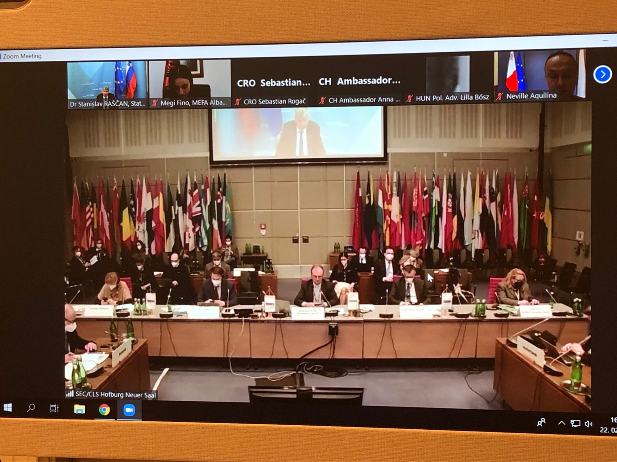 Slovenia expresses its full support for the territorial integrity of Ukraine within its internationally recognised borders. In its statement and supplementary to the EU statement, Slovenia condemned the decision by the Russian President to recognise the “independence” of Donetsk and Luhansk and send Russian military forces to the region. By taking this decision, the Russian Federation is also acting in violation of United Nations Security Council Resolution 2202 and the Minsk Agreement. “Such violations will not remain without consequences”, asserted State Secretary Raščan at the meeting.