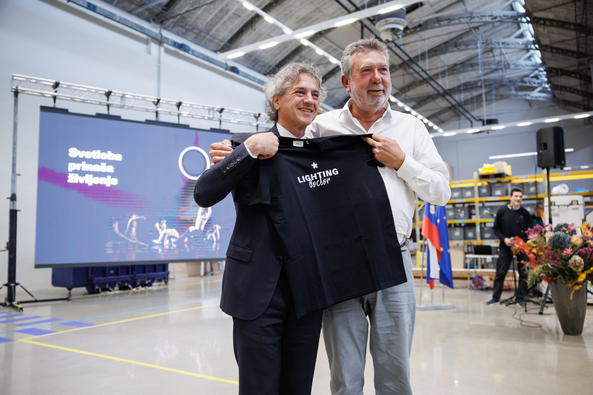Prime Minister Robert Golob addressed attendants at the official opening of Intra Lighting's new factory today, 14 October 2022. The company, which is active in sixty-five countries worldwide, has moved from Mirna to its new premises in Šempeter pri Gorici. The construction of the new, sophisticated factory followed the policy for green transformation that is friendly both to the environment and the community.