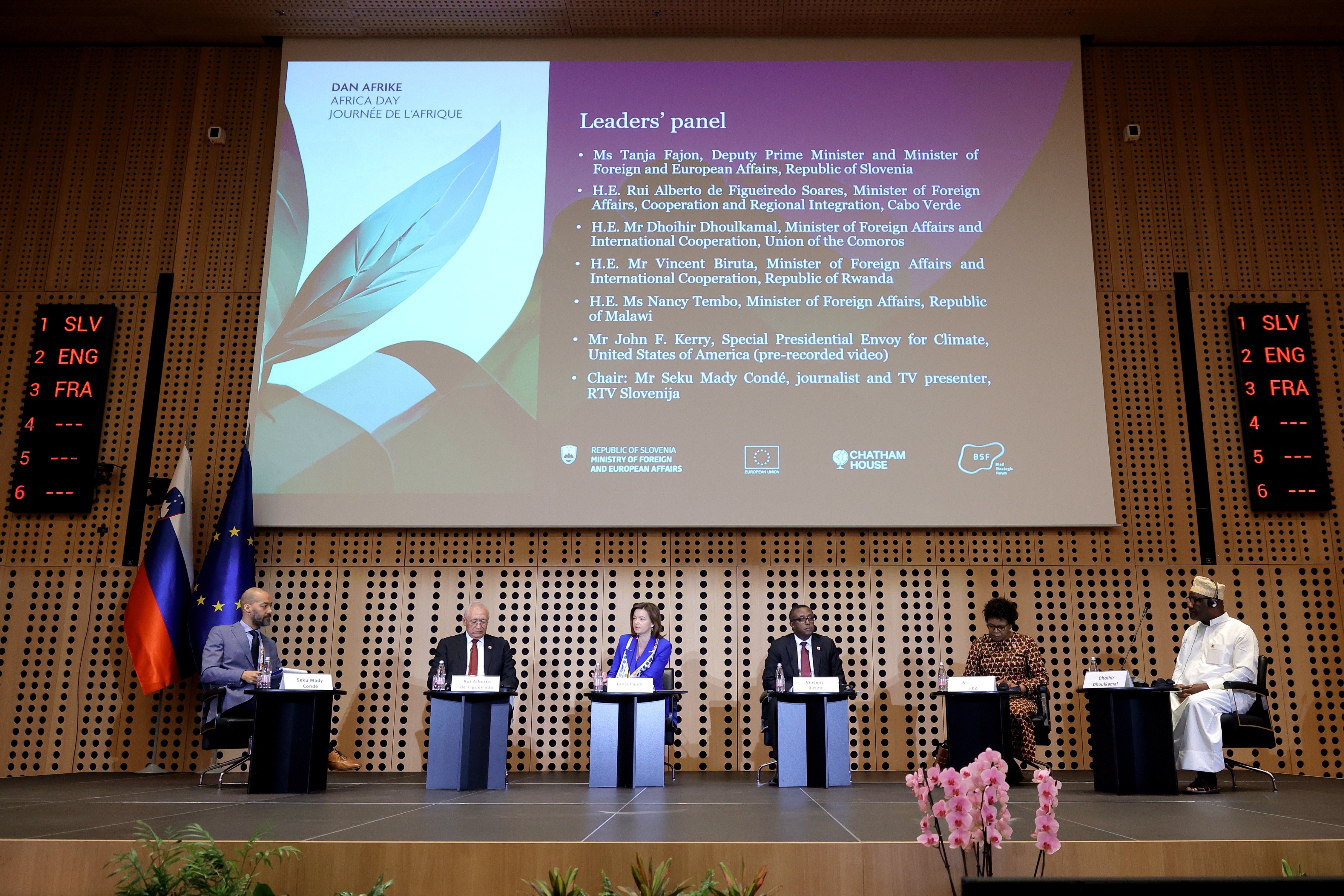 After the opening address, Minister Fajon took part in a panel of leaders – together with Nancy Tembo, Minister of Foreign Affairs of Malawi, Vincent Biruta, Minister of Foreign Affairs and International Cooperation of Rwanda, Rui Alberto de Figueiredo Soares, Minister of Foreign Affairs, Cooperation and Regional Integration of Cape Verde, and Dhoihir Dhoulkamal, Minister of Foreign Affairs and International Cooperation of Comoros. They discussed climate justice, effective models for global climate financing, and regional and local solutions for specific environmental challenges. The participants were joined by John F. Kerry, US Special Presidential Envoy for Climate Action via video link. Minister Fajon underlined the importance of cooperation in the protection of natural resources: “I often use terminology water diplomacy – because with managing water in peaceful and sustainable way, together, across borders, we can also better manage conflicts and violence and protect the well-being of our citizens.”