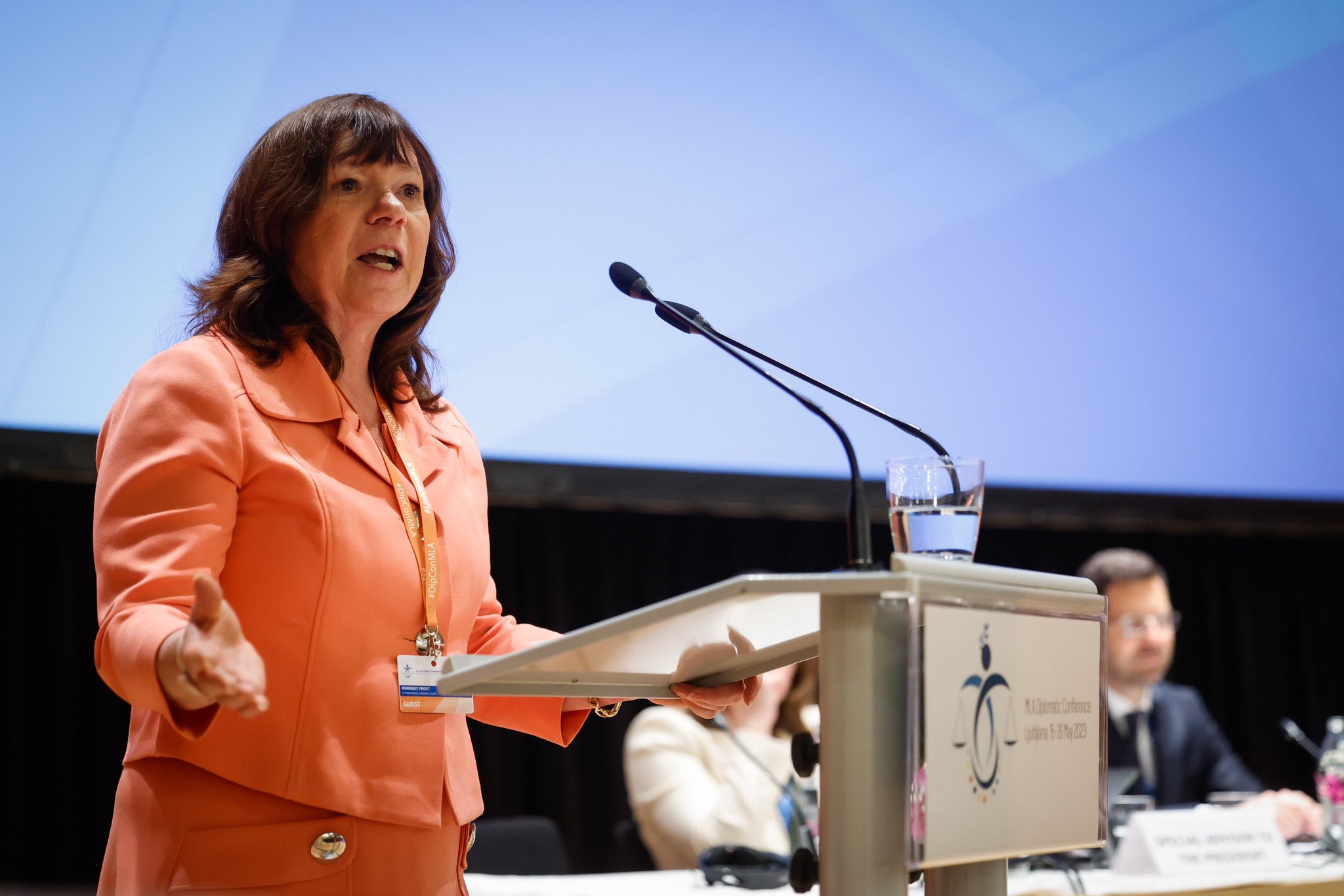 In her address, Minister of Justice Dr Dominika Švarc Pipan stressed that impunity for international crimes remains a very serious threat to the rule of law as a key element of democratic societies, and that it also increases the risk of further violence and undermines our efforts to protect and preserve human life, dignity and fundamental rights. "It is our duty to bring perpetrators to justice and to deliver justice for the victims", underlined Minister Švarc Pipan. She pointed out that any criminal proceedings must also ensure the full and effective protection of the children involved.