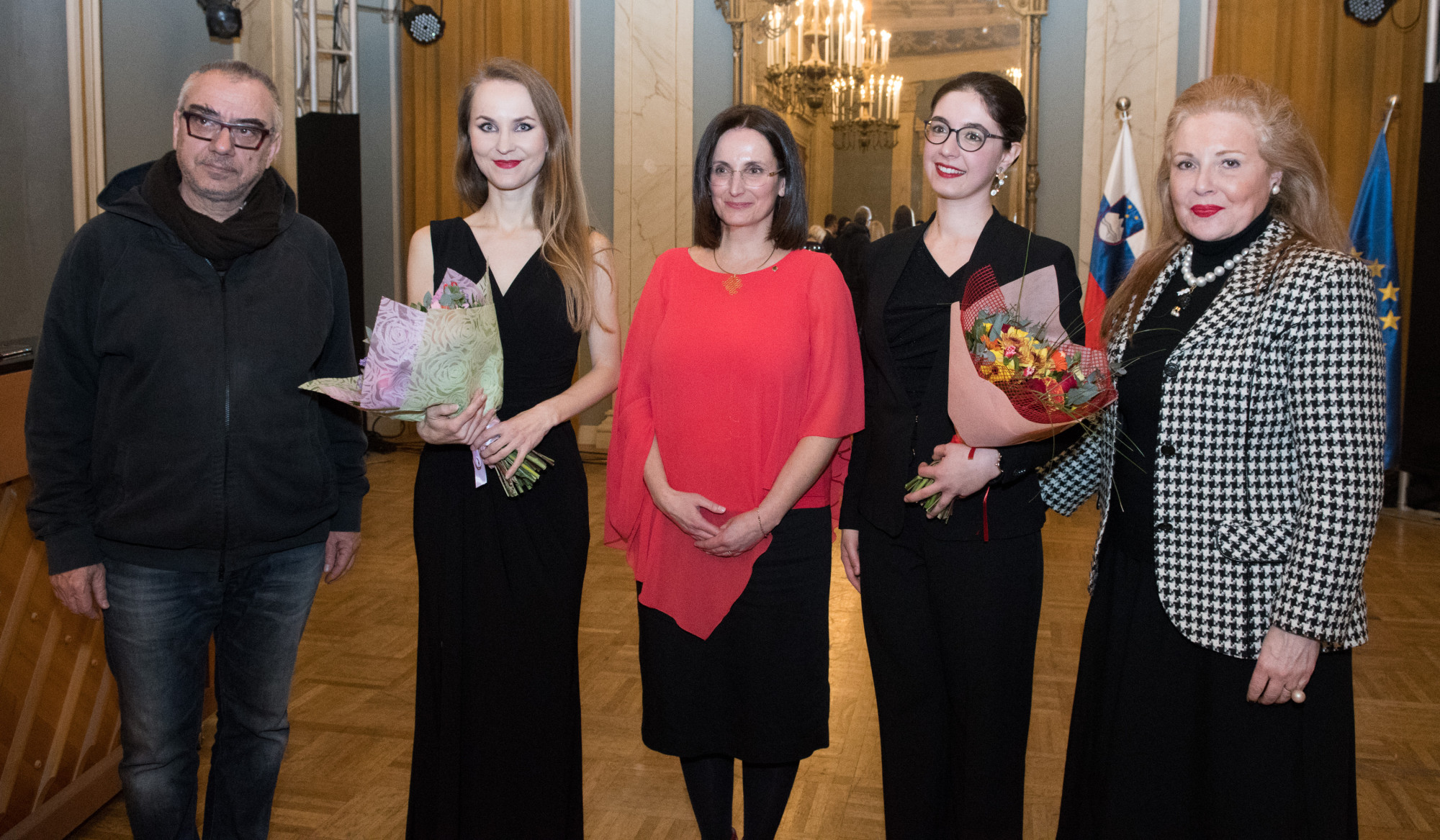 The last part of the evening was dedicated to the Slovenian evergreen classics. The audience could indulge in the uplifting melodies of beloved songs such as Brez besed/Without words, Poletna noč/Summer night and Med iskrenimi ljudmi/Among honest people by Mojmir Sepe and Mlade oči/Young eyes by Jure Robežnik.