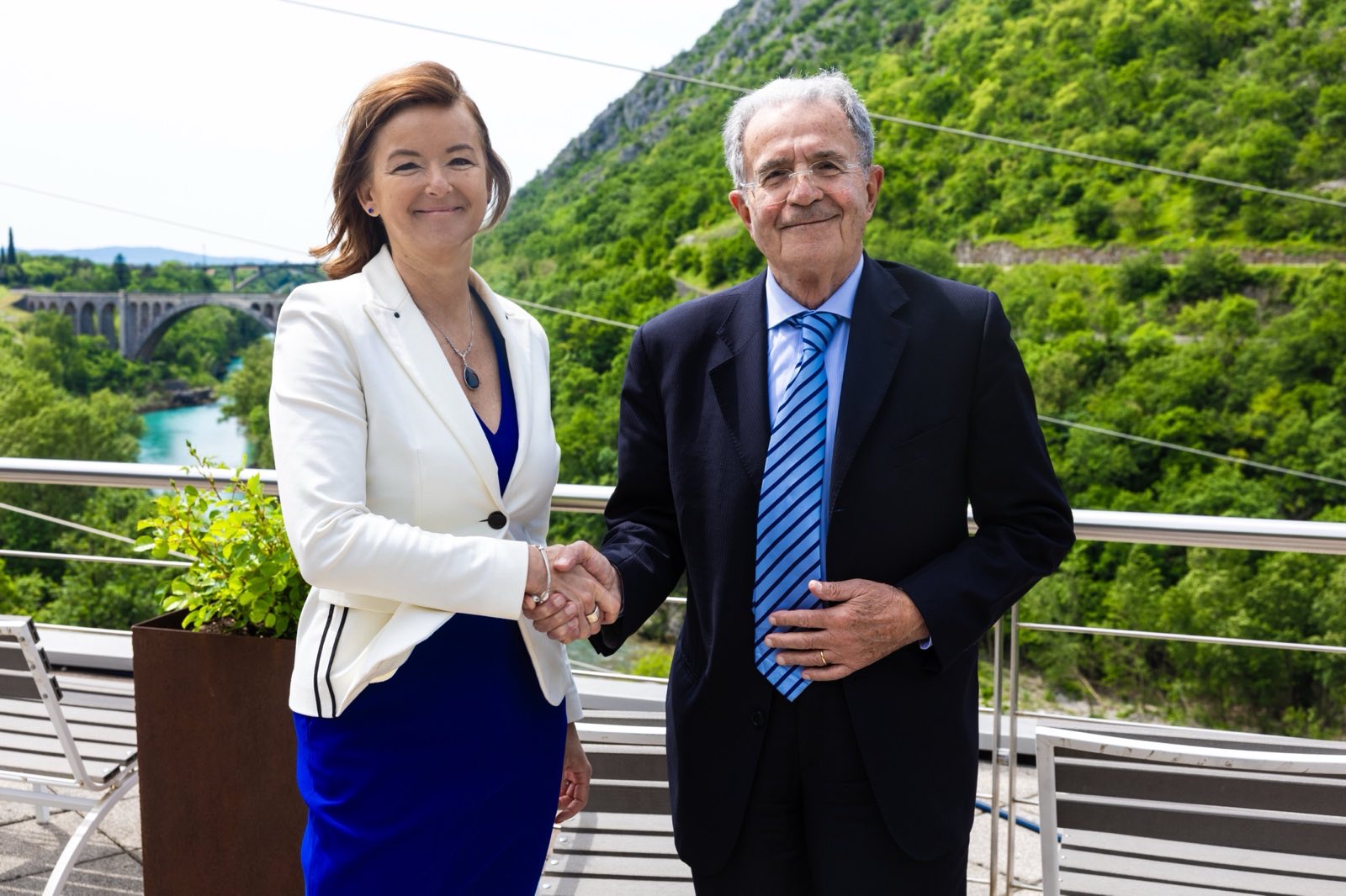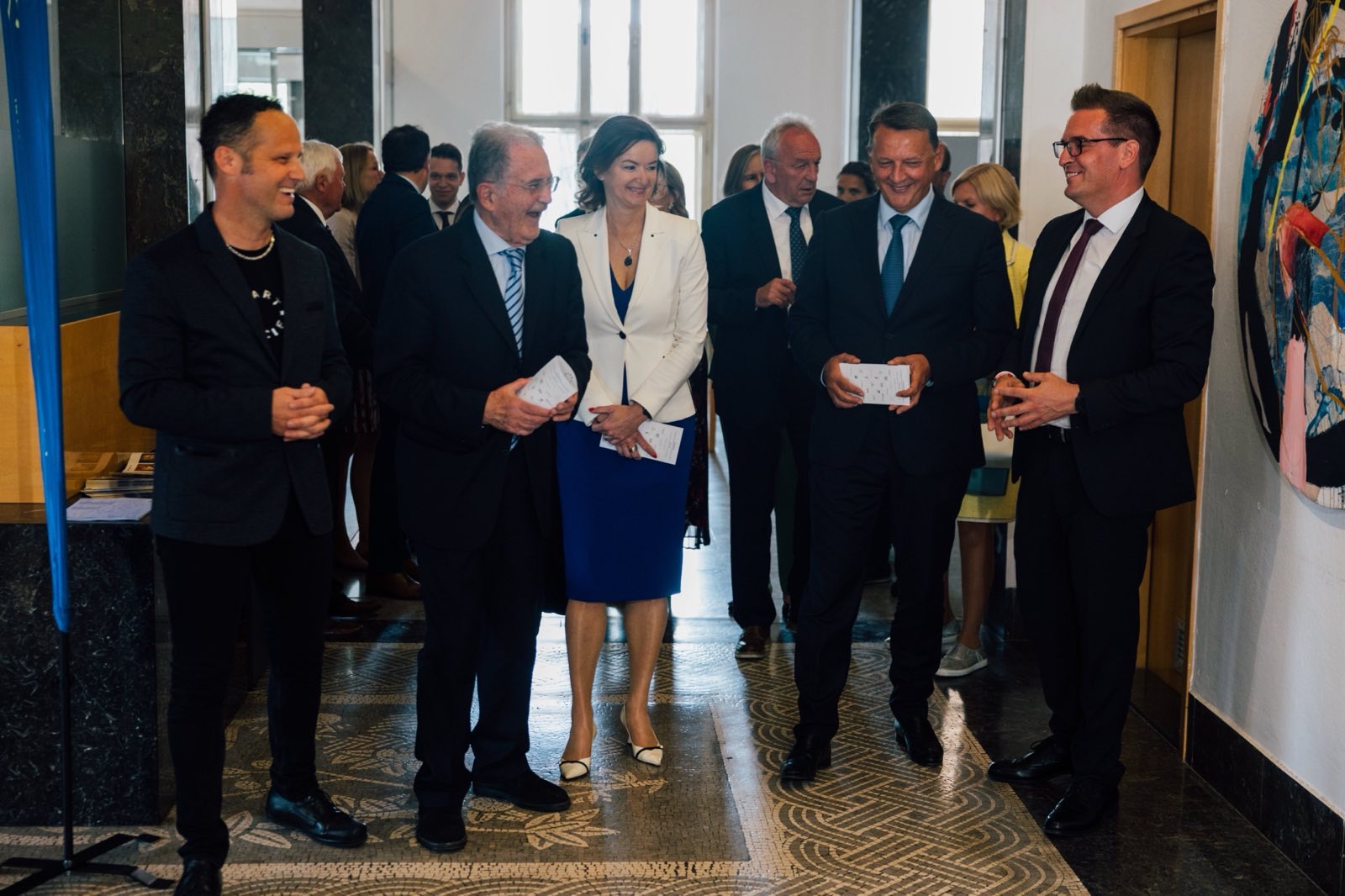 Before the start of the Europe Day celebrations, Minister Fajon met with the former President of the European Commission Romano Prodi. Together, they visited a special exhibition by Art Circle, an international visual arts festival that brings together culture, tourism, wine and international diplomacy. The collection has been in the making since 1997, and so far 20 countries have opened Cultural Embassies – a special form of art residency that takes place each spring and autumn within the festival in Slovenia and across the border in Italy. The Art Circle Festival has demonstrated that art is an inspiration and that culture connects and is the foundation of Europe.