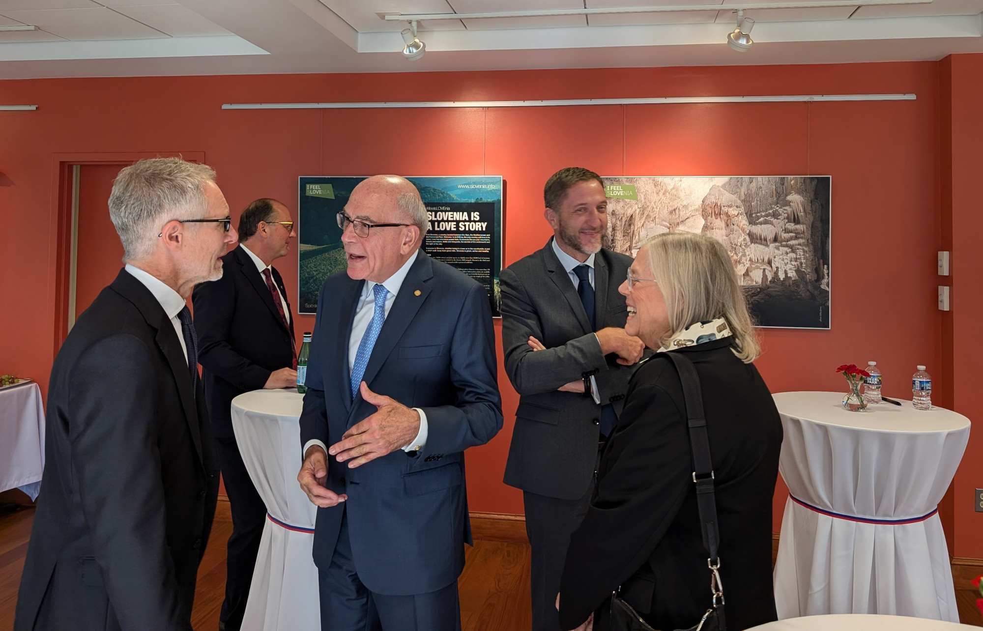 At a reception for conference participants and Slovenian businesspeople, Mr. Matic Rodica presented the wine offerings for the U.S. market on behalf of the Rodica Family Organic Winery. Rodica wines are distributed across most U.S. states.