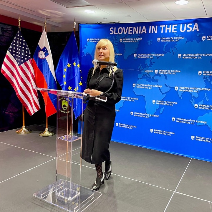 The attendees were addressed by the Ambassador of the Republic of Slovenia, Iztok Mirošič; the Senior Digital Coordinator at the U.S. Department of State, Matt Jacobs; and the Program Director of the Center for European Perspective, Ingrid Omahna.
