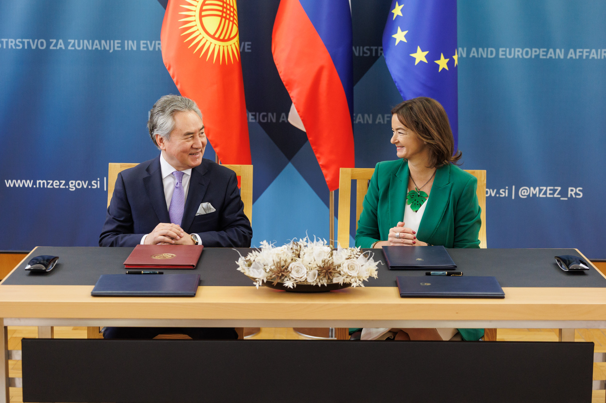 During the visit, Ministers Fajon and Kulubaev signed the Agreement on mutual exemption from short-stay visa requirements for holders of diplomatic passports and the Programme of Cooperation between the Ministry of Foreign and European Affairs of the Republic of Slovenia and the Ministry of Foreign Affairs of the Kyrgyz Republic for the 2026–2027 period.