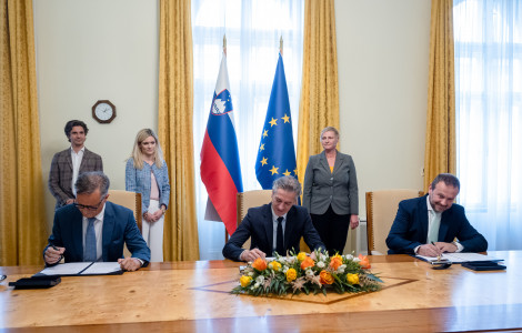 Prime Minister Robert Golob and deputies of the Italian and Hungarian national communities, Felice Žiža and Ferenc Horváth, today formalised their cooperation by signing an agreement.