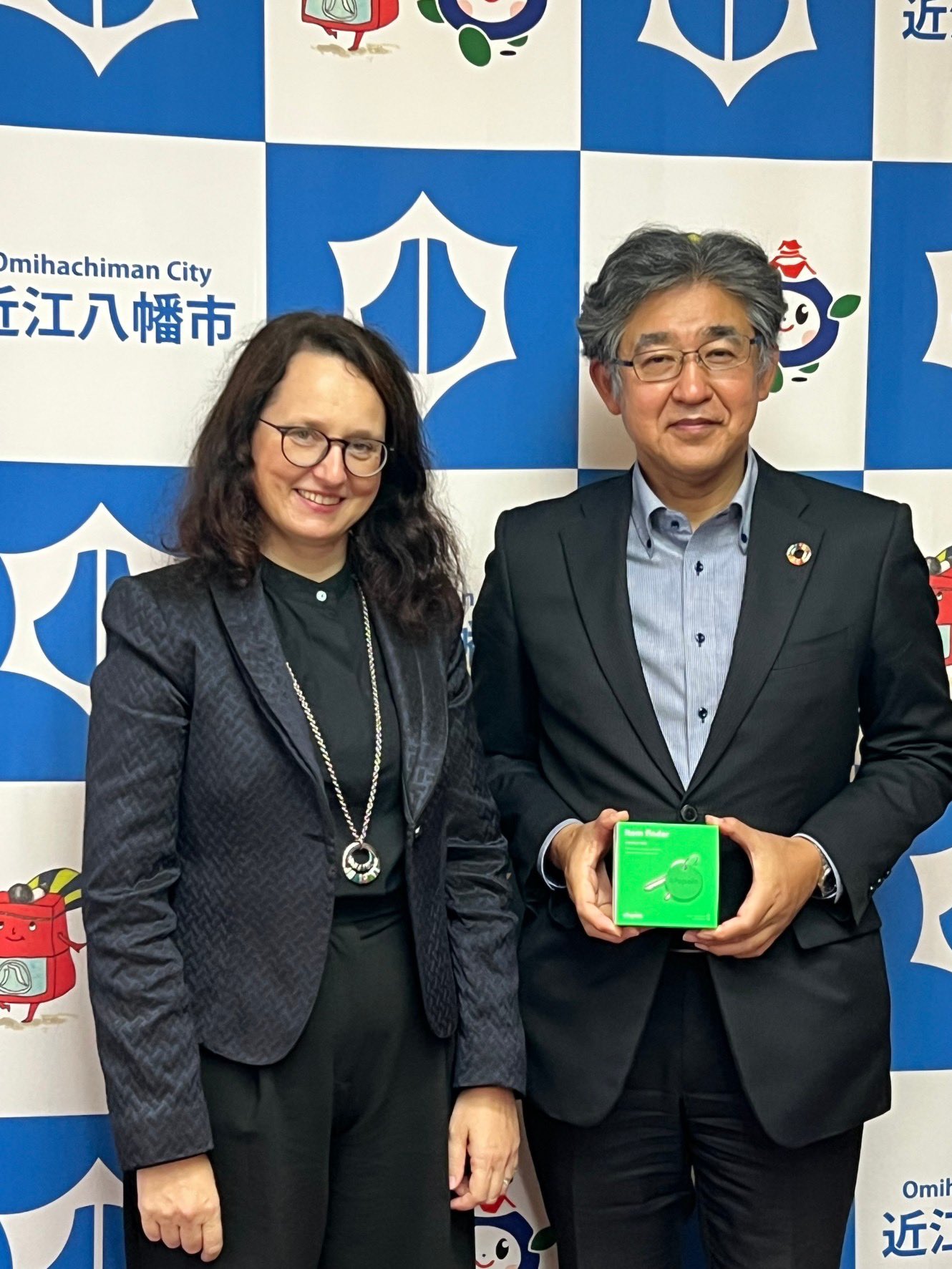 また、ビエンナーレの傍ら、近江八幡市長、ビエンナーレ会長の小西理氏、ビエンナーレディレクターの中田洋子氏と会談しました。スロベニアと日本の文化協力や、ビエンナーレへのスロベニア人アーティストの参加について話し合われました。また、スロベニア共和国大使館は、本ビエンナーレの後援名義者となりました。