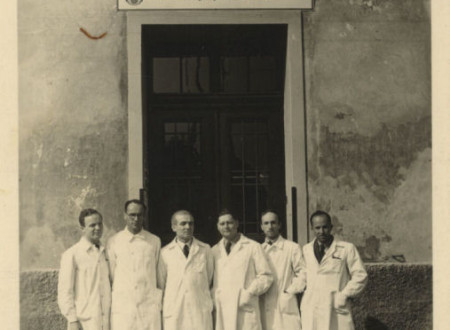 Vodstvo Banovinskega inštituta za raziskovanje in zdravljenje novotvorb je čutilo potrebo (morda jih je k temu nagovoril prav dr. Novak), da se ob otvoritvi avgusta 1938 ovekoveči pred vhodom obnovljene šempeterske kasarne, kjer je bila njihova prvotna lokacija. Od leve proti desni stojijo sekundarij dr. Milan Perušek, dr. Franc Novak, specialist ginekolog, ravnatelj dr. Josip Cholewa, docent, kirurg, primarij dr. Leo Šavnik, specialist ginekolog, dr. Lojze Štrancer, strokovni sodelavec kliničnega laboratorija, prof. dr. ing. France Avčin, nadzornik rentgenskih terapevtskih aparatov.