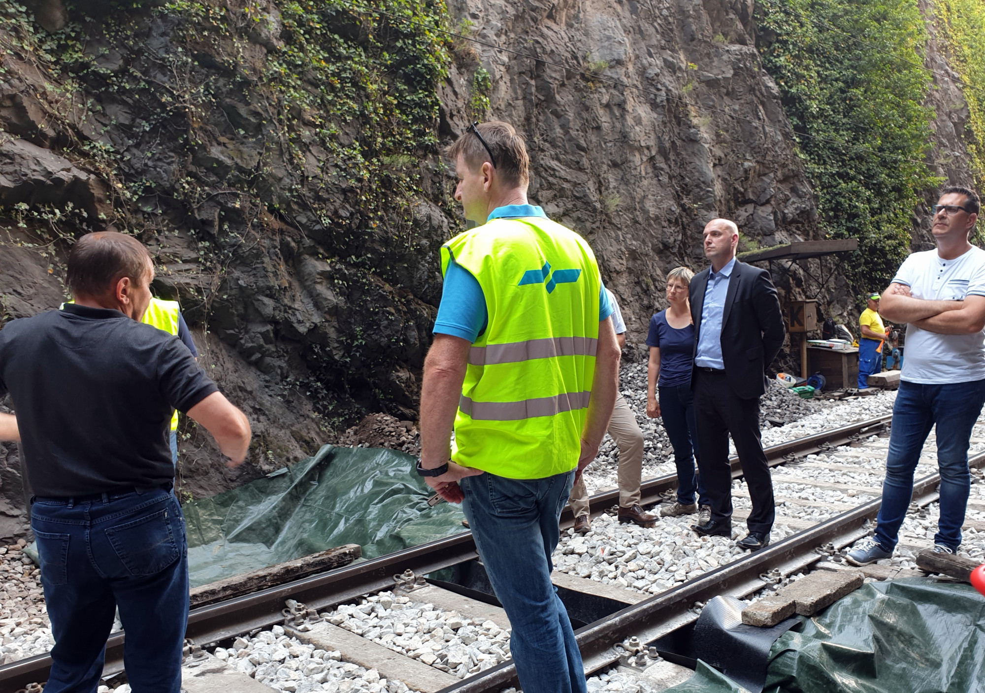 »Danes so bile položene zaščitne folije, ki bodo, če bo prišlo do pronicanja vode iz stropa ali stene predora na kraju železniške nesreče pri Hrastovljah, na razdalji 50 m na vsako stran od onesnaženega odseka, zagotovile, da se voda zajame in odvede iz predora, in to je v tem trenutku najpomembnejše«, je poudaril minister Zajc.
