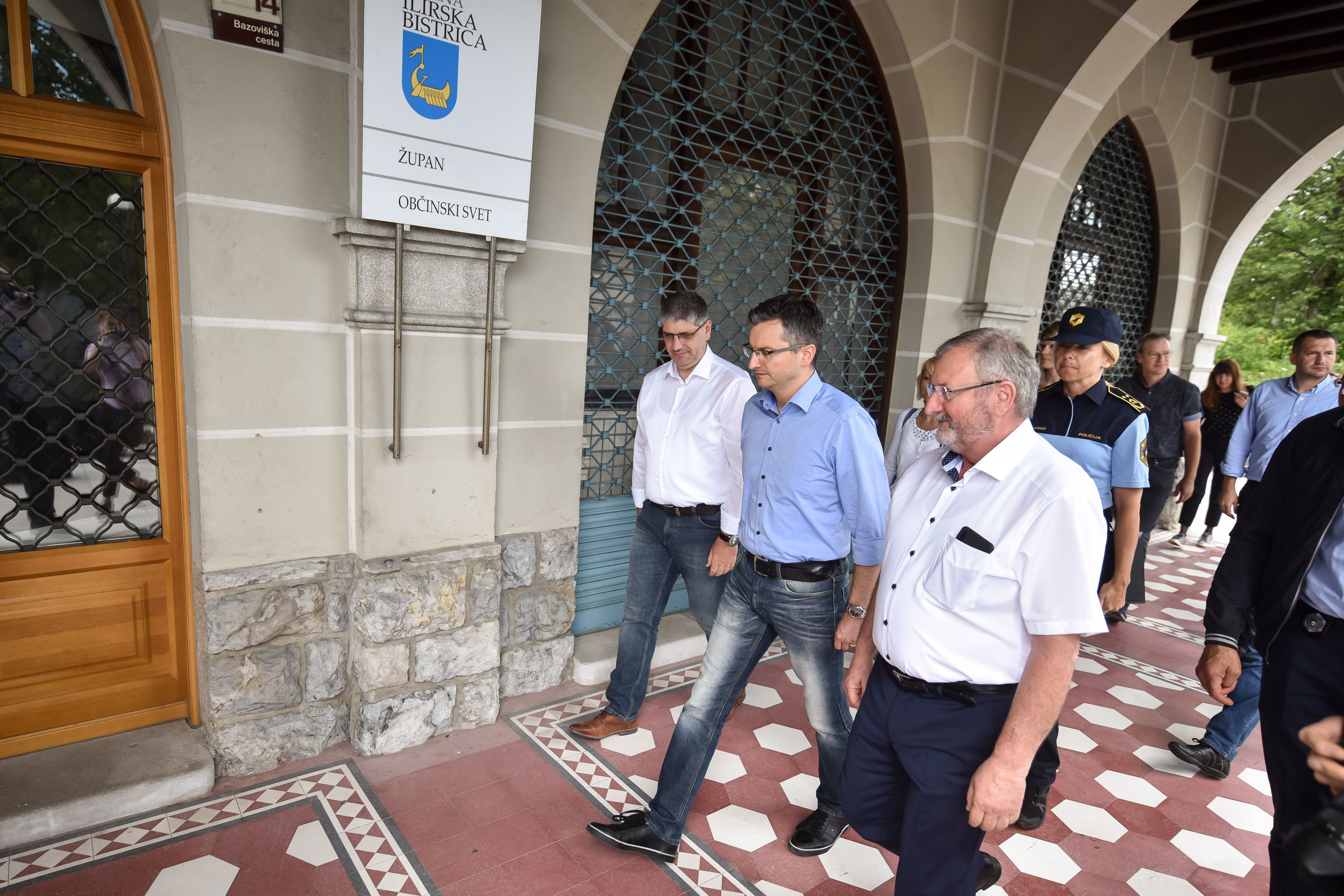 Pogovor predsednika vlade Marjana Šarca z županom Ilirske Bistrice Emilom Rojcem. | Avtor: Nebojša Tejić/STA