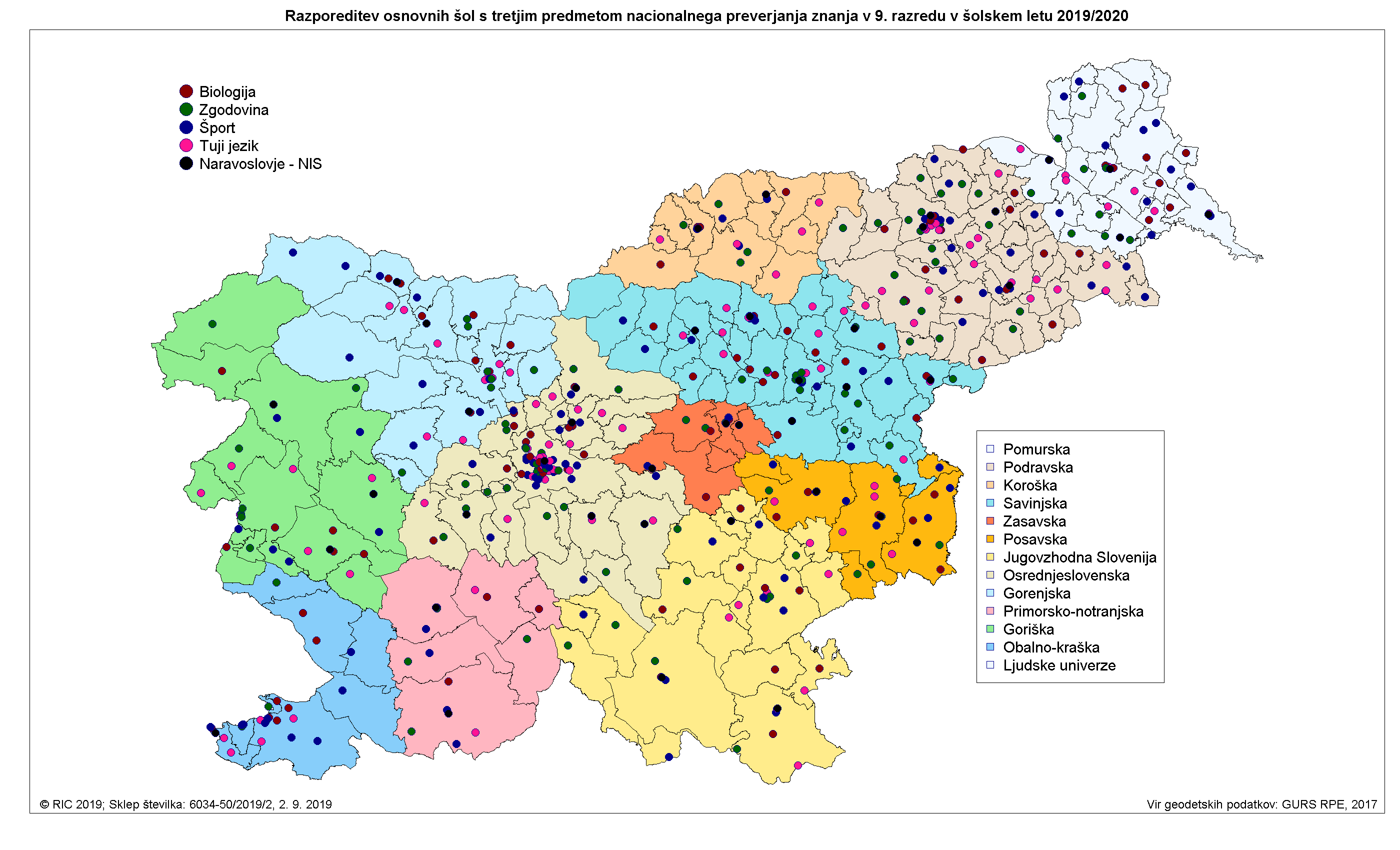 V skladu z Zakonom o osnovni šoli je minister s sklepom dne 21. 6. 2019 izmed obveznih predmetov 8. in 9. razreda osnovne šole izbral štiri predmete za določitev tretjega predmeta, iz katerega bodo učenci 9. razreda osnovne šole opravljali nacionalno preverjanje znanja (NPZ) v šolskem letu 2019/2020. To so: biologija, zgodovina, šport in tuji jezik.