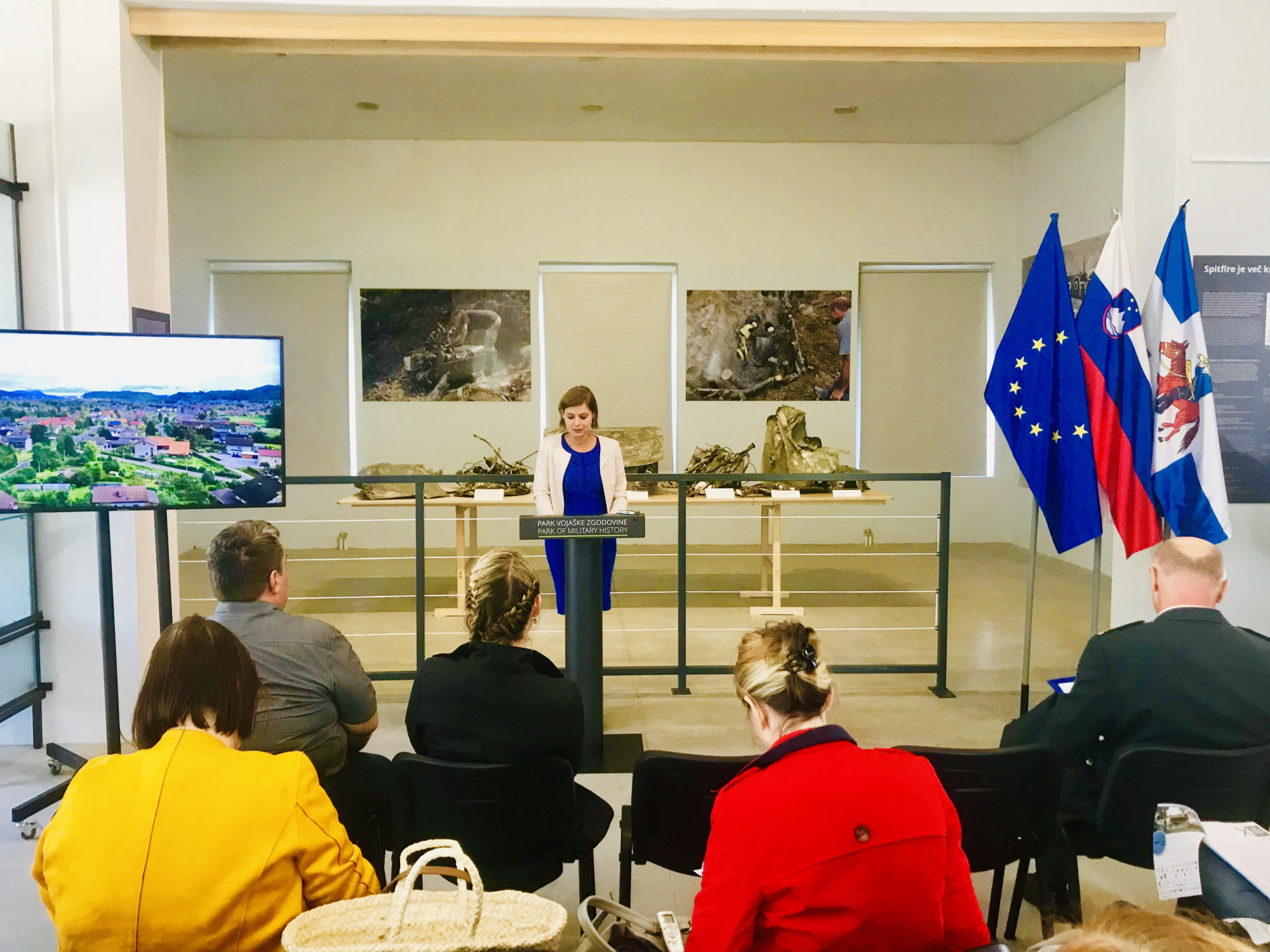 Državna sekretarka mag. Culetto je ob tej priložnosti dejala: »Ministrstvo za kulturo je hitro prepoznalo pomen najdbe, ki jo danes predstavljamo in zagotovilo interventna sredstva za začetek izkopavanj letala Supermarine Spitfire. Zdi se nam pomembno, da tako iz tehnološkega kot zgodovinskega gledišča osvetlimo dogodek iz druge svetovne vojne.« Nagovor pa je zaključila z mislijo o Parku vojaške zgodovine Pivka, ki je bil letos vpisan v razvid muzejev, da so tovrstni muzeji izjemnega pomena, saj nas spodbujajo, da se zavemo, da smo raznoliki, a zavezani k skupni evropski misli in cilju: ohranjanju miru. Muzeji, kot je ta, so nekakšen spomin in pomenljiv opomin.