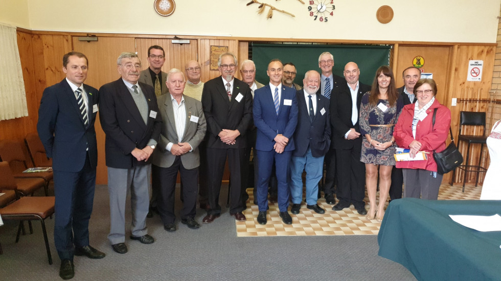 V organizaciji Sveta slovenskih organizacij Viktorije so se v Avstralsko slovenskem kulturnem in športnem društvu Ivan Cankar v Geelongu, uro vožnje iz Melbourna, z njim najprej srečali predstavniki slovenskih ustanov iz Melbourna z okolico. Navzoči so bili predsednice in predsedniki iz društva gostitelja v Geelongu, iz Slovenskega društva Melbourne, Slovensko avstralskega kulturnega in športnega društva Planica Springvale, Slovenskega društva St. Albans, Slovenskega družabnega in športnega kluba Jadran, Slovenskega socialnega skrbstva in informacijskega urada iz Kew – Melbourne ter predsednica SSOV in predstavnica v Svetu Vlade RS za Slovence po svetu Frances Urbas Johnson.
