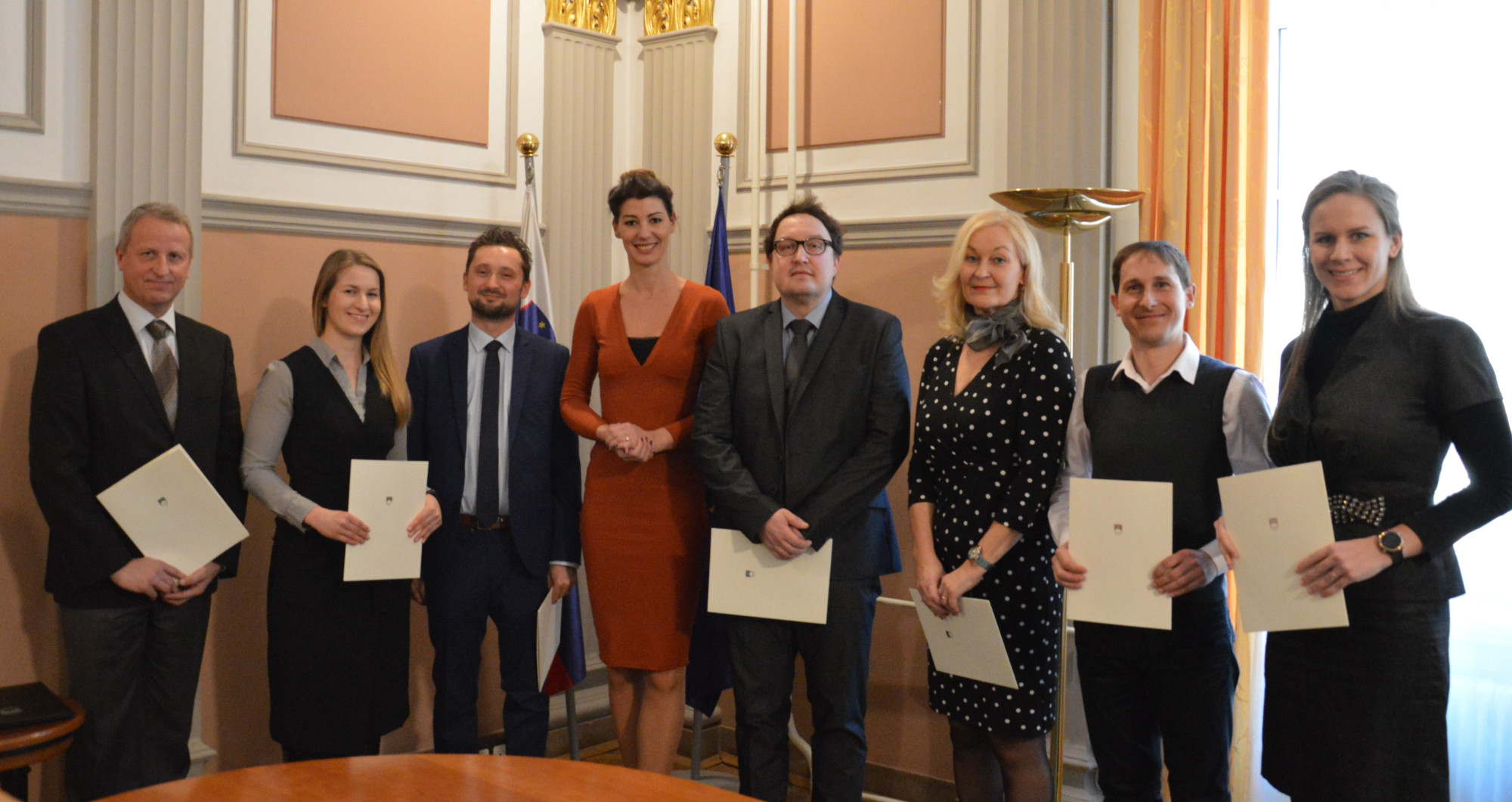 Pred državno sekretarko Ministrstva za pravosodje dr. Dominiko Švarc Pipan so danes, na Ministrstvu za pravosodje zaprisegli 3 sodni izvedenci, 2 sodna cenilca in 2 sodni tolmački