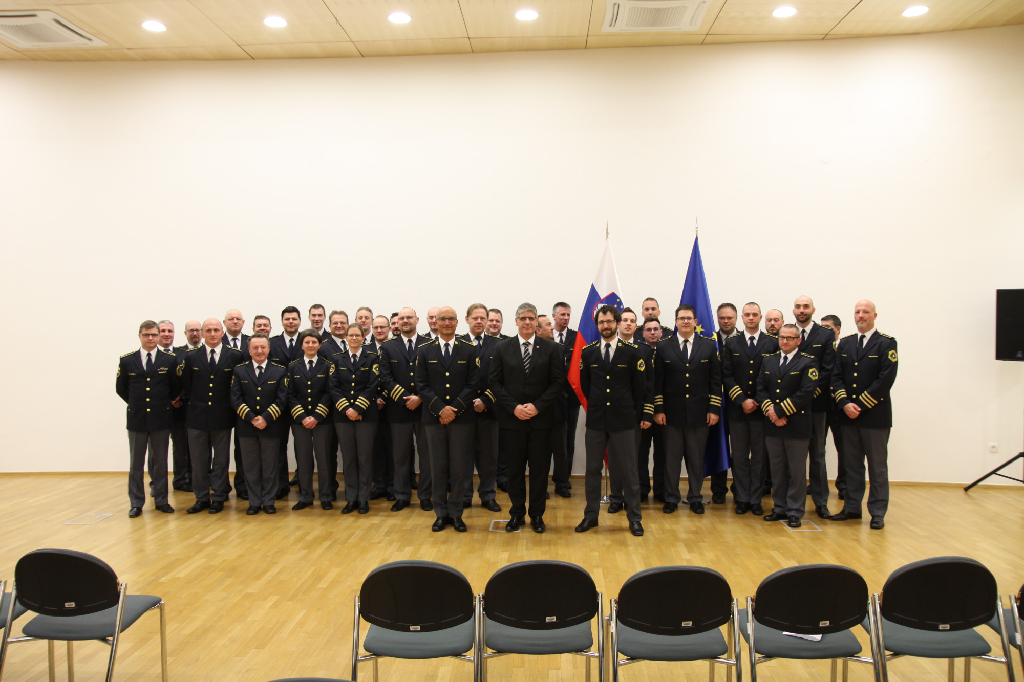 Zbrane na slovesnosti je nagovoril minister za notranje zadeve Boštjan Poklukar, ki je uvodoma namenil besede velikemu slovenskemu pesniku dr. Francetu Prešernu. Povedal je, da se čas, v katerem je pesnik živel, odraža v njegovih pesmih, še posebej zavedanje, da svoboda ni nekaj, kar nam je dano samo od sebe, ampak se je zanjo potrebno nenehno boriti. »Dr. France Prešeren se je jasno in odločno opredelil za svoj, slovenski narod in slovenski jezik,« je poudaril. Vizionarska pesem Zdravljica je po 145 letih postala državna himna. Govori o prijateljstvu, enakosti in spoštovanju med vsemi narodi. »Preveva me izjemen ponos ob zgodovinskem dejstvu, da je ravno Policijski orkester prvi zaigral novo himno, Prešernovo Zdravljico,« je dejal Poklukar.