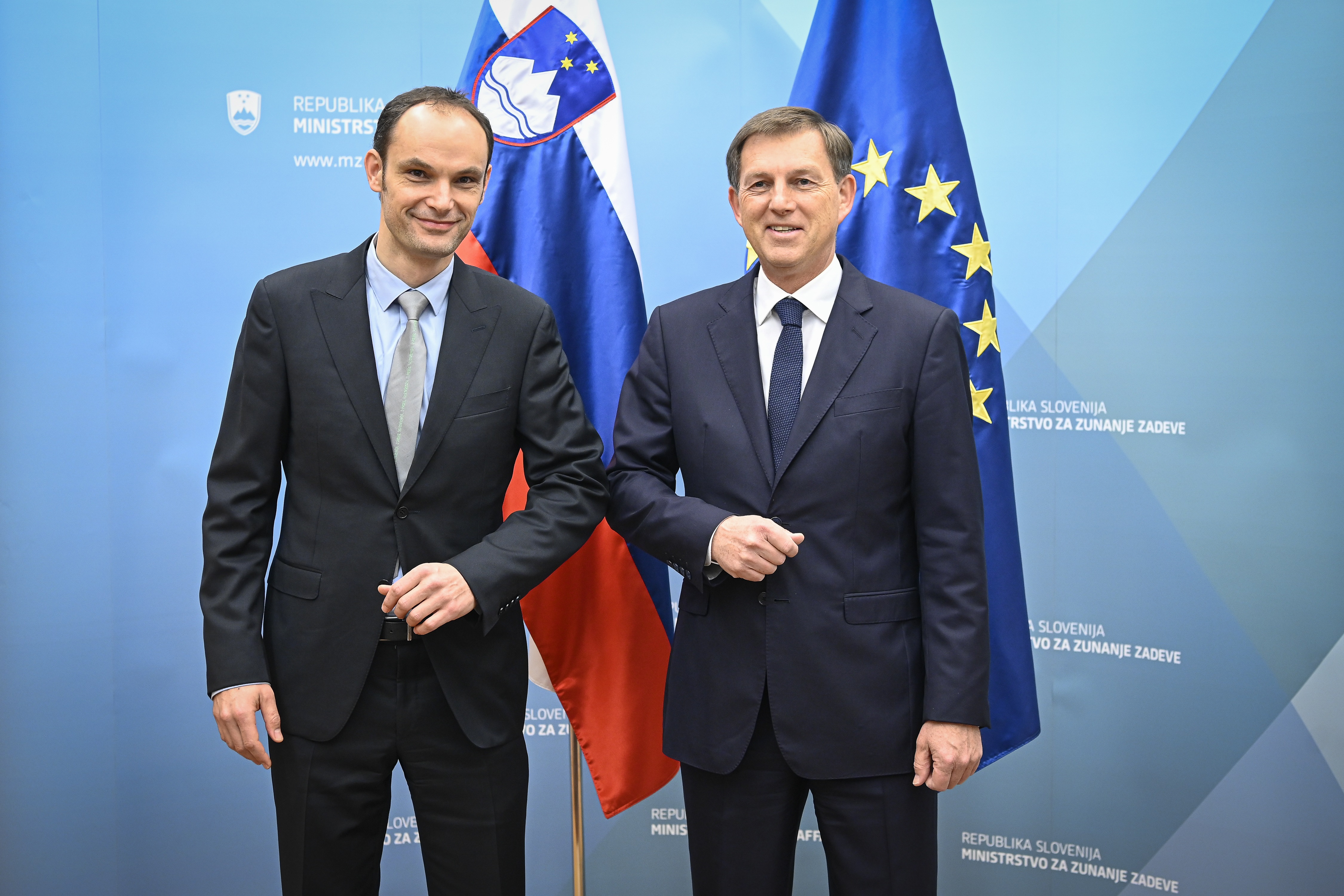 Novi minister za zunanje zadeve Republike Slovenije dr. Anže Logar in dosedanji minister za zunanje zadeve Republike Slovenije dr. Miro Cerar | Avtor: STA