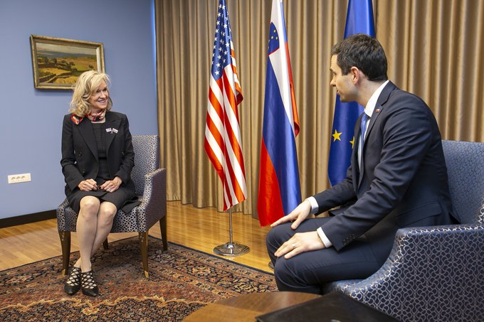 Minister za obrambo mag. Matej Tonin je v torek, 31. marca, na seznanitveni pogovor sprejel veleposlanico ZDA v Sloveniji Lyndo Blanchard.