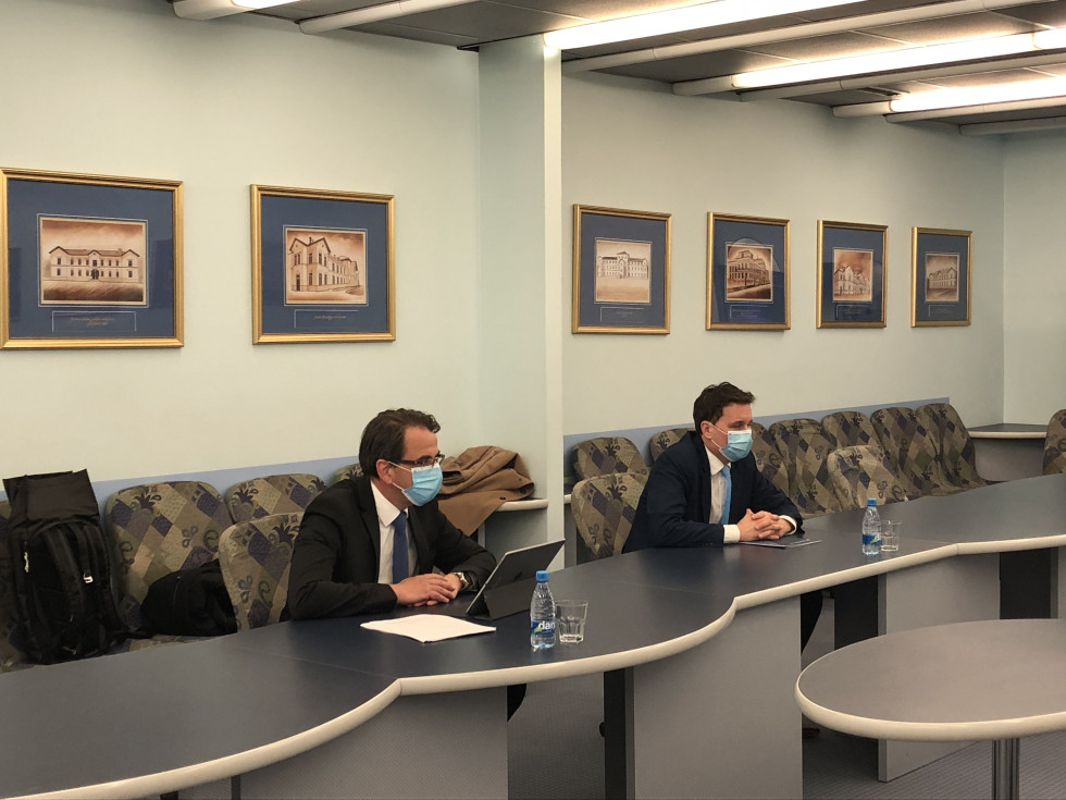 Minister Koritnik se je pred podpisom pogodbe sestal tudi z vodstvom UKC Ljubljana, na čelu z generalnim direktorjem Janezom Poklukarjem. Govorili so o delovanju in organizaciji naše največje bolnišnice v času epidemije Covid19 in tudi o izplačevanju dodatkov po kolektivni pogodbi in veljavni proti korona zakonodaji.