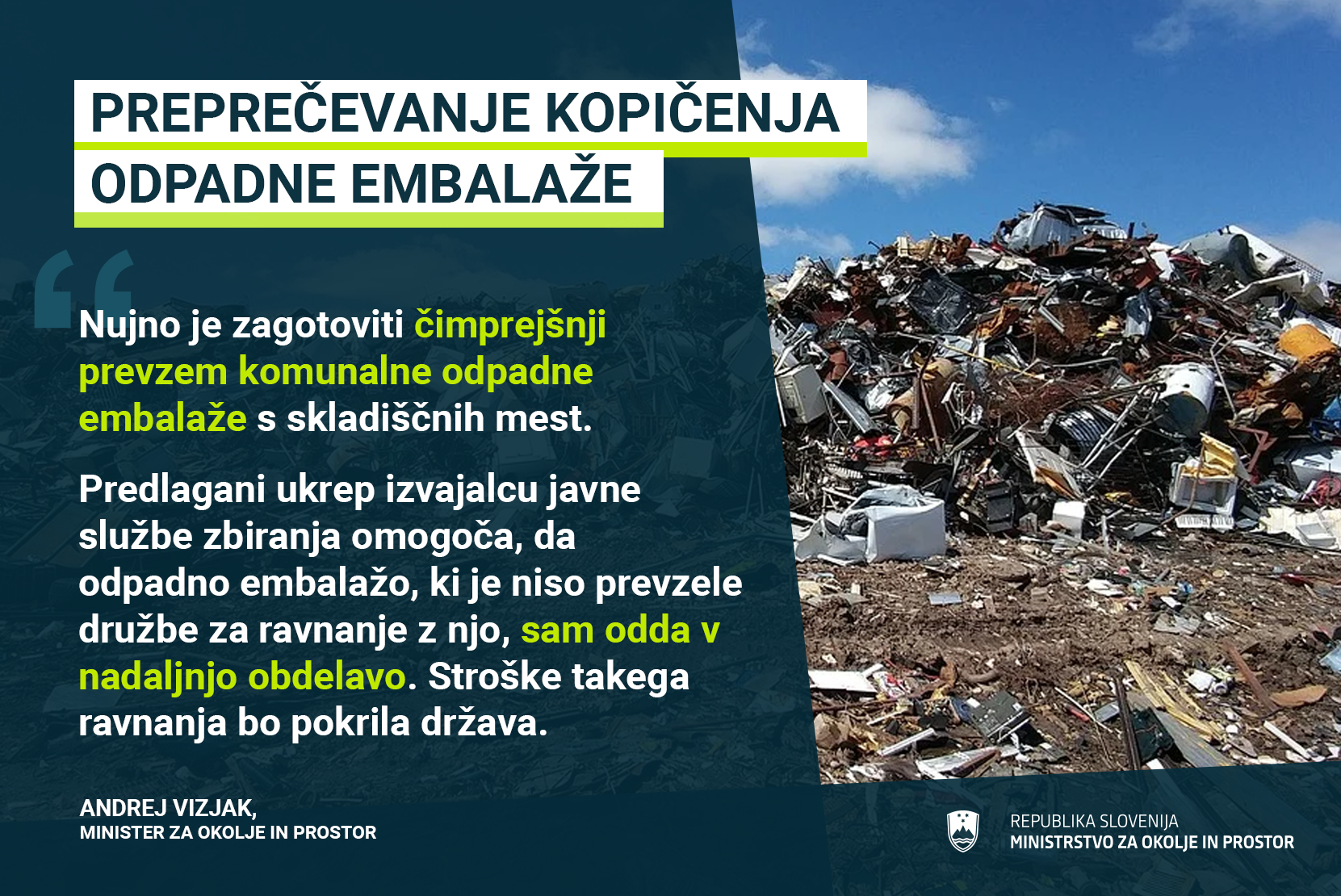 Ker zaenkrat ni podatkov o tem, koliko zadevne odpadne embalaže je bilo v stiku z okuženim prebivalstvom, je nujno potrebno zagotoviti čimprejšnji prevzem komunalne odpadne embalaže s skladiščnih mest izvajalcev javne službe z namenom varovanja zdravja in življenja ljudi, ki v zbirnih centrih opravljajo storitve obvezne javne službe varstva okolja in napravah za nadaljnjo obdelavo odpadne embalaže.