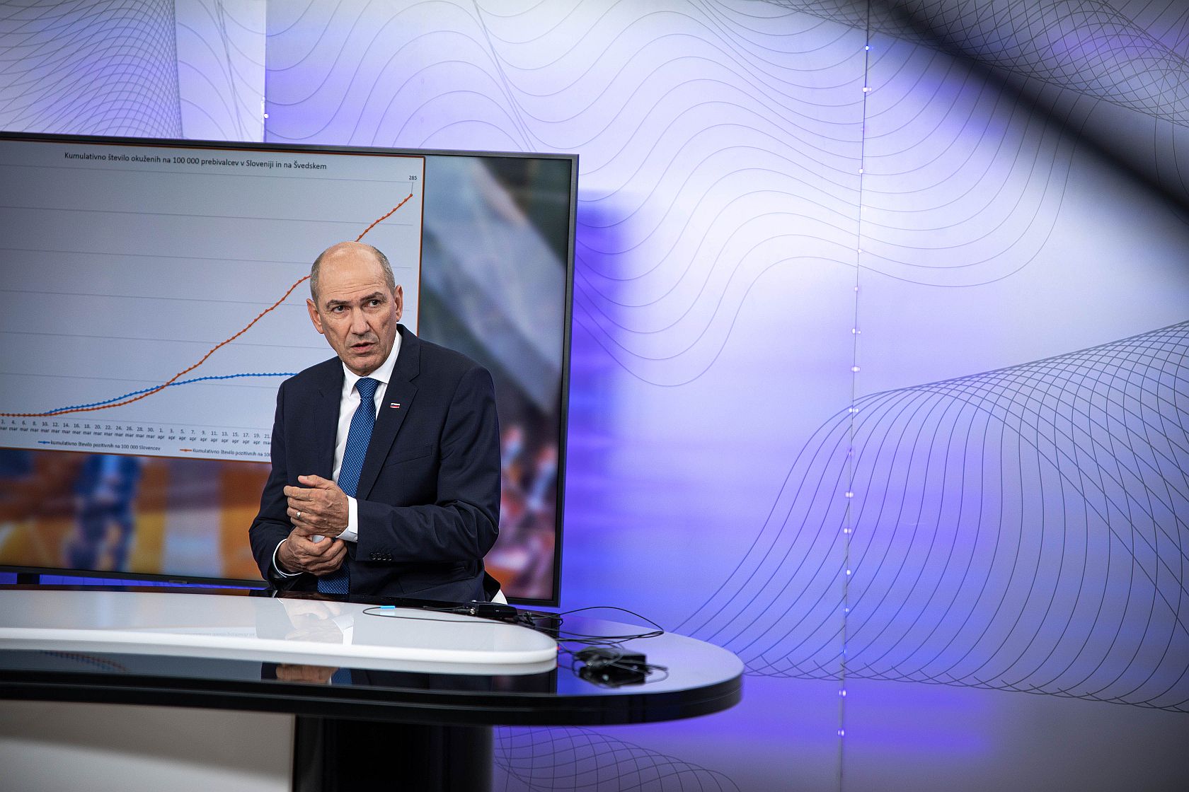 Uvodoma sta včeraj premier in voditelj govorila o spopadu Slovenije z epidemijo koronavirusa. Kot je povedal premier, v boju z virusom še nismo zmagali, "smo pa dobili prvo bitko, za kar je več razlogov. Eden od teh razlogov je, da smo izbrali pravo taktiko in da nismo računali na to, da se bodo ljudje kar prekužili ter da se bo najbolj ranljive izpostavilo okužbi." Kot je poudaril Janša, imamo v Sloveniji spoštljiv odnos do življenja, in vsi ukrepi vlade so bili usmerjeni v to, da se obvaruje predvsem najbolj ranljive, s samozaščitnimi ukrepi in odgovornim ravnanjem pa so k dobri epidemiološki sliki največ pripomogli prav državljanke in državljani. "Slovenija ni razglasila izrednega stanja, Slovenija ni razglasila vojnega stanja, kot sta to storili Srbija ali Francija, kjer še vedno veljajo nekatere vojne uredbe. Slovenija ni uvedla policijske ure. Parlament je bil celo proti, da bi prostovoljno sledili okužbam prek telefonskih spletnih programov. Uporabili smo verjetno najmilejšo zakonsko podlago za ukrepe na celem svetu,” je ob tem dejal Janša in dodal, da so imeli nekateri kolegi iz Evropske unije izjemno velike težave z uvedbo ukrepov. “Italija je uvedla ukrep, da ni več druženja v restavracijah. Še teden dni je trajalo, preden se je to začelo spoštovati, in tisti teden je bil katastrofalen za Lombardijo,” je poudaril predsednik. Nadaljeval je, da so za vsakim ukrepom, ki ga je vlada sprejela, mnoge ure ter dnevi analiziranja, razpravljanja, tehtanja, kaj to v praksi pomeni in kakšne so izkušnje v tujini. Ob tem je poudaril, da je strokovna skupina, ki jo je vodila dr. Bojana Beovič, opravila izjemno delo.