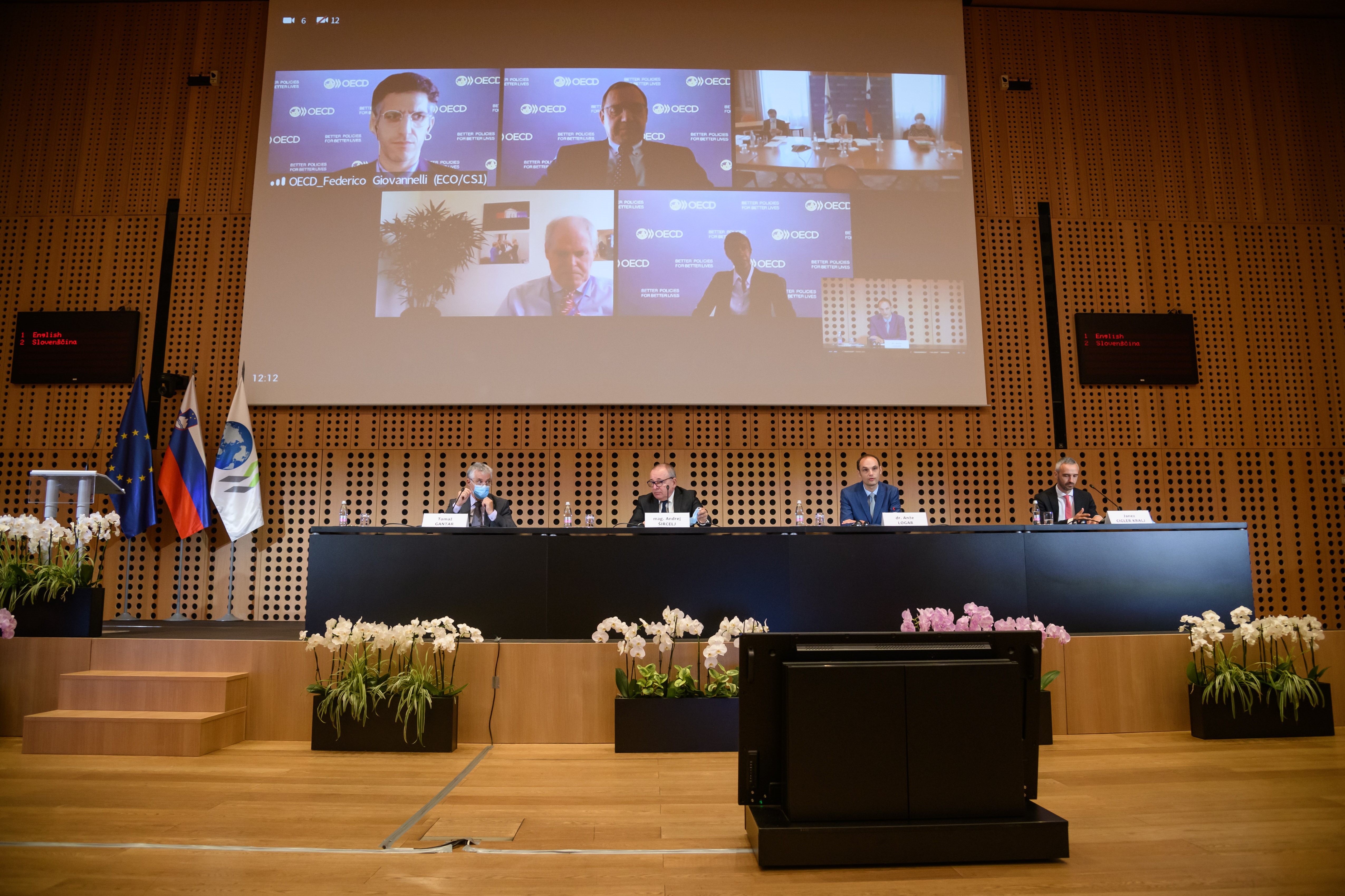 Generalni sekretar OECD Angel Gurría je v svojem nagovoru preko videopovezave izpostavil, da je Slovenija od pridružitve organizaciji OECD dosegla izreden gospodarski in socialni napredek, vlada pa je na občudovanja vreden način ukrepala, da bi obvladala zdravstvene in gospodarske posledice pandemije COVID 19. "Zdaj je pomembno, da ostane na začrtani poti, da je pripravljena na zagotavljanje nadaljnje podpore, kjer je to potrebno za obnovitev rasti, nato pa nadaljuje z ukrepi za reševanje dolgoročnih gospodarskih izzivov zaradi staranja prebivalstva,“ je povedal generalni sekretar Gurría.