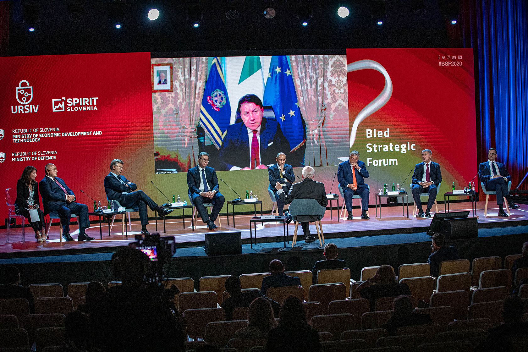 Poleg predsednika slovenske vlade so v razpravi evropskih voditeljev sodelovali tudi češki predsednik vlade Andrej Babiš, poljski predsednik vlade Mateusz Morawiecki, madžarski predsednik vlade Viktor Orban, hrvaški predsednik vlade Andrej Plenković, srbski predsednik republike Aleksandar Vučić, italijanski ministrski predsednik Giuseppe Conte in bolgarski predsednik vlade Bojko Borisov. Na blejskem strateškem forumu sta v razpravi voditeljev tokrat prvič sodelovala tudi predsednica Mednarodnega denarnega sklada Kristalina Georgieva in predsednik Mednarodnega olimpijskega komiteja Thomas Bach. Vsi visoki gostje so izrazili zahvalo slovenskemu predsedniku vlade Janezu Janši za izvedbo strateškega foruma in udeležbo tako velikega števila voditeljev. Razpravo je moderiral profesor dr. Nik Gowing s King’s College iz Velike Britanije.