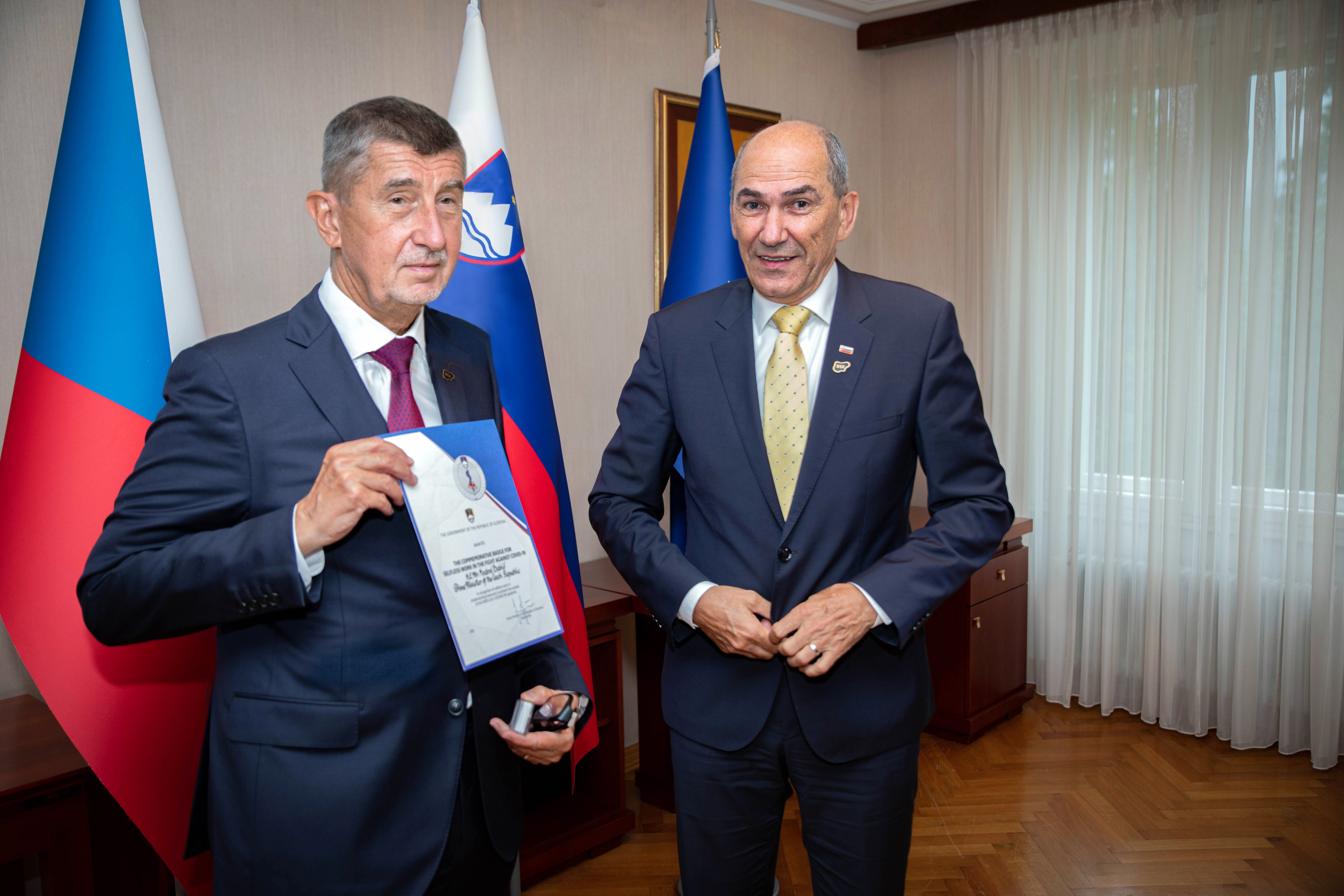 Ob koncu srečanja je premier Janez Janša češkemu predsedniku vlade Andreju Babišu predal listino in spominski znak za požrtvovalnost v boju proti COVID-19 in se ob tem zahvalil za vso nesebično pomoč, ki jo je Češka nudila Sloveniji v izjemno težkih časih. Prijatelji Čehi so nam v prvem valu epidemije s koronavirusom, ko je primanjkovalo medicinske in zaščitne opreme, poslali milijon kirurških mask in 200.000 mask FFP2.