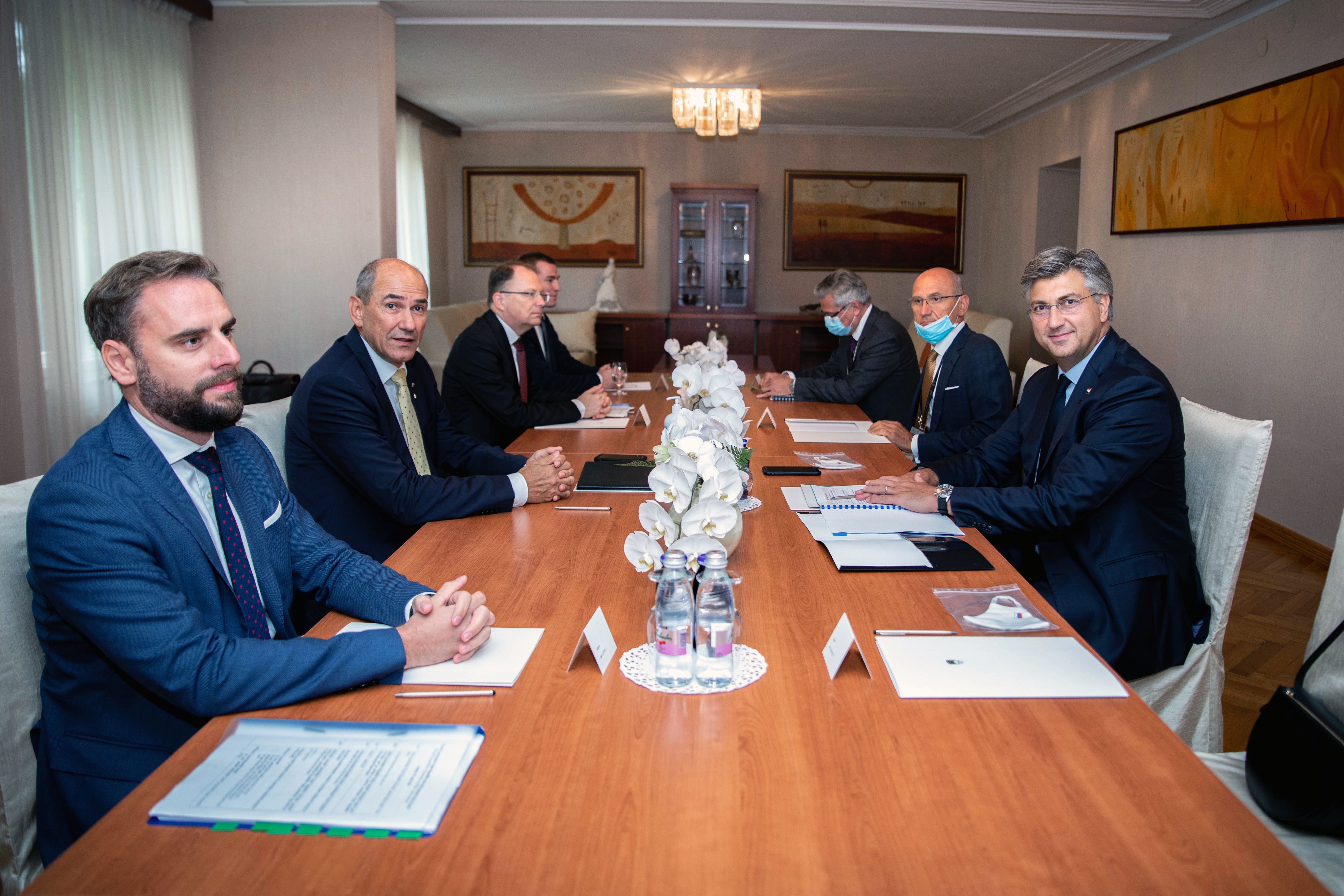 Predsednik vlade Janez Janša se je po razpravi voditeljev na Blejskem strateškem forumu sestal s predsednikom hrvaške vlade Andrejem Plenkovičem. Sogovornika sta spregovorila predvsem o medsosedskem sodelovanju in ukrepih zoper epidemijo koronavirusa.