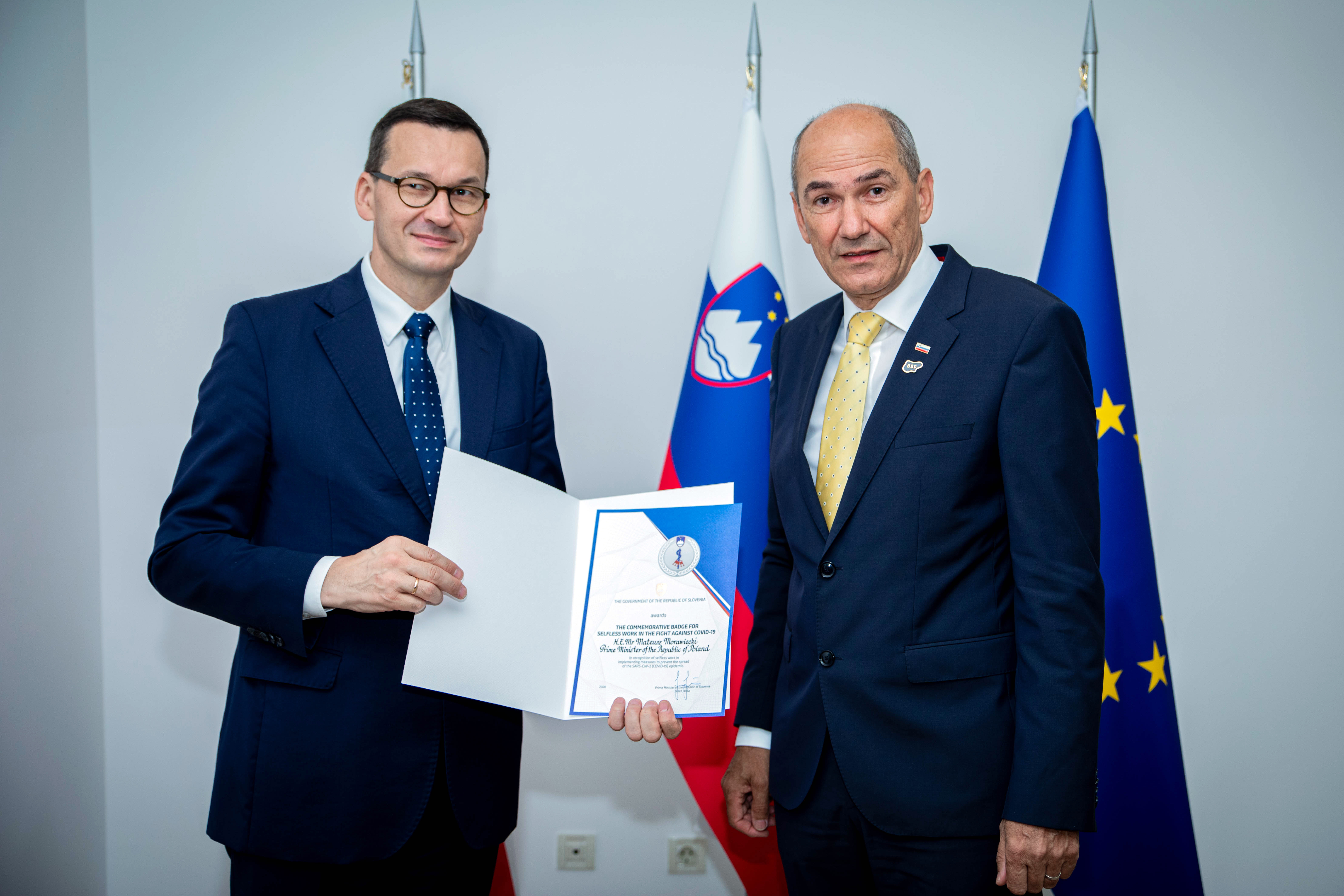 Predsednik vlade Janez Janša je poljskemu predsedniku vlade ob zaključku srečanja predal listino in spominski znak za požrtvovalnost v boju proti COVID-19 in se ob tem poljskemu narodu zahvalil za vso pomoč v času koronavirusne krize. Slovenska vojska je namreč z vojaško zdravstveno enoto poljske vojske izmenjevala strokovna stališča ter izkušnje pri obvladovanju koronavirusne krize, državi pa sta dobro sodelovali tudi pri vračanju državljanov v domovino.