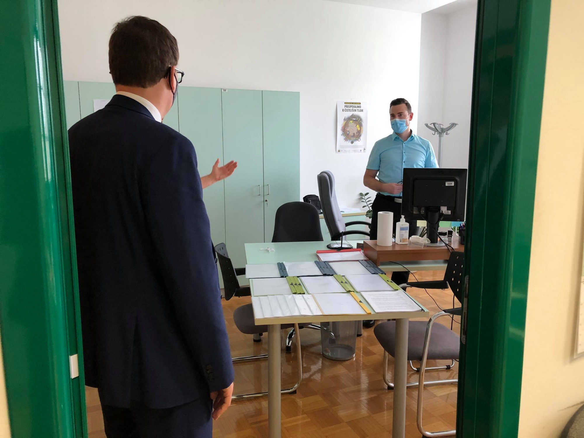Minister in državna sekretarka sta najprej obiskala Upravno enoto Novo mesto, kjer sta se srečala z zaposlenimi in se sestala z načelnico upravne enote Matejo Sotler Štor.