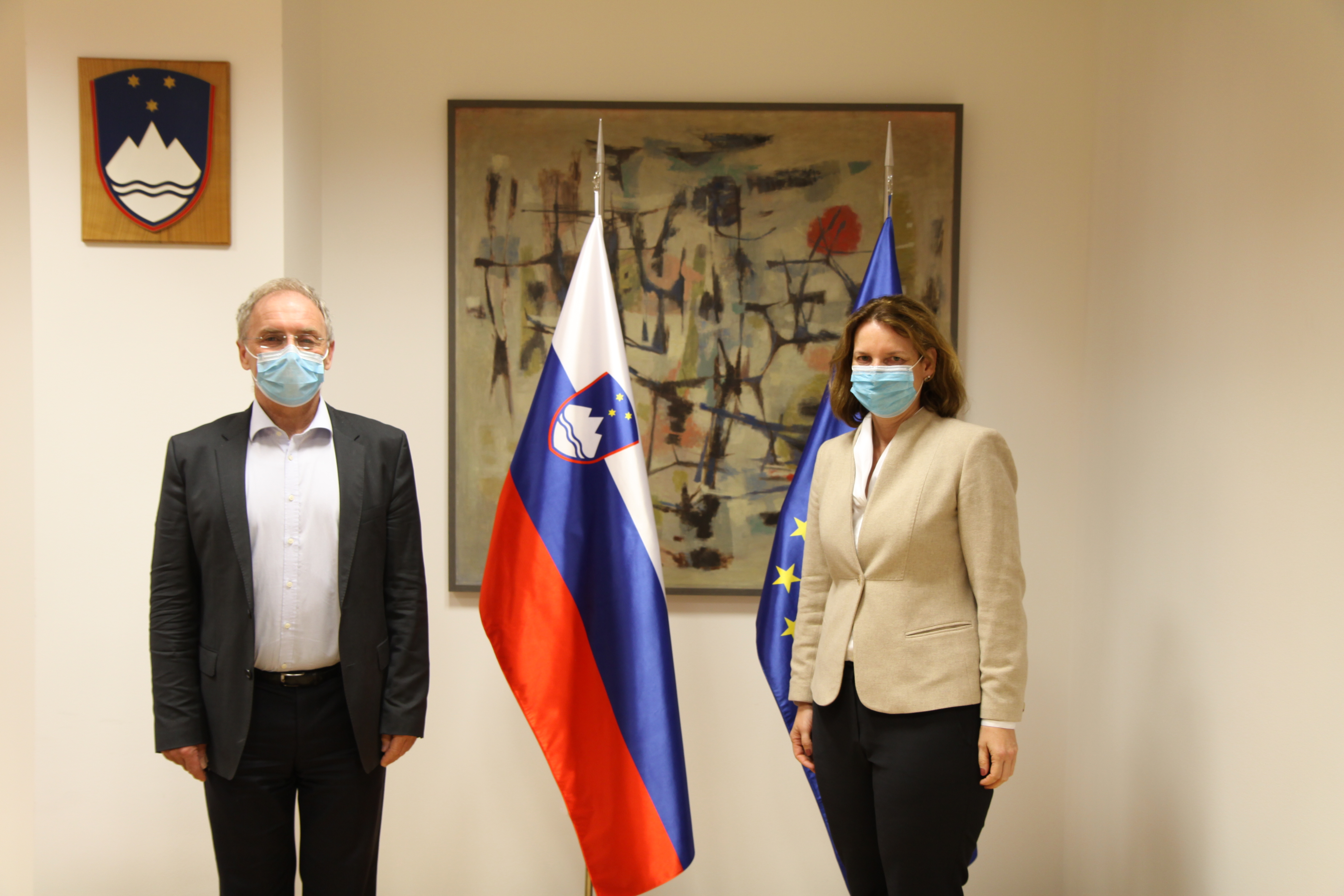 Minister in veleposlanica sta si izmenjala informacije o dobrem sodelovanju med državama na področju notranjih zadev. Govorila sta tudi o migracijah, veleposlanica pa ga je seznanila s ponovnim podaljšanjem mejne kontrole na notranji meji EU med Slovenijo in Avstrijo. V pogovoru sta se dotaknila tudi ukrepov držav za preprečevanje širjenja okužbe s COVIDOM-19.