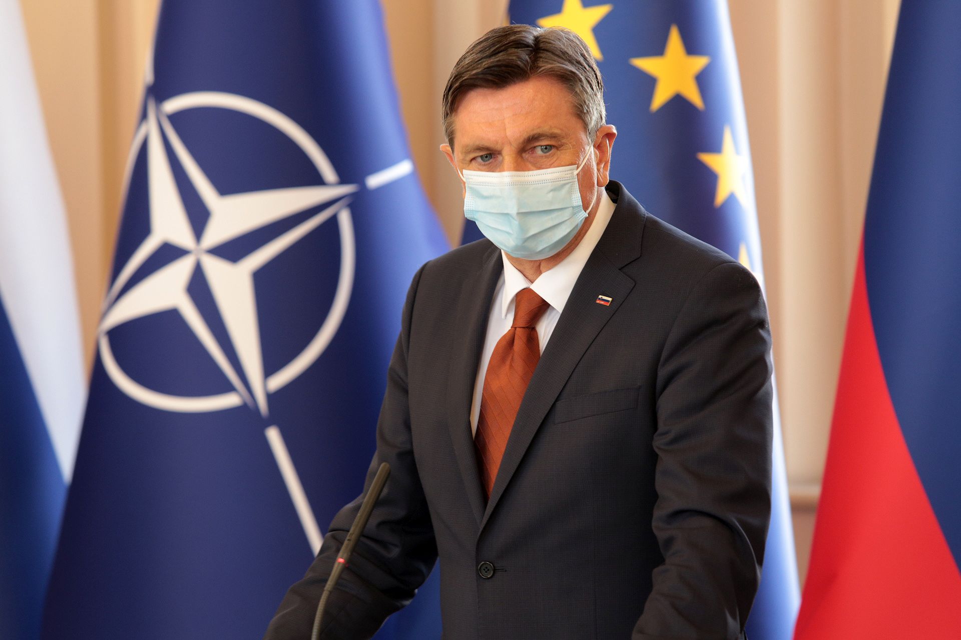 Predsednik Republike Slovenije in vrhovni poveljnik obrambnih sil Borut Pahor, Minister za obrambo mag. Matej Tonin in načelnik Generalštaba Slovenske vojske generalmajor Robert Glavaš na novinarski konferenci | Avtor: Bruno Toič, MORS