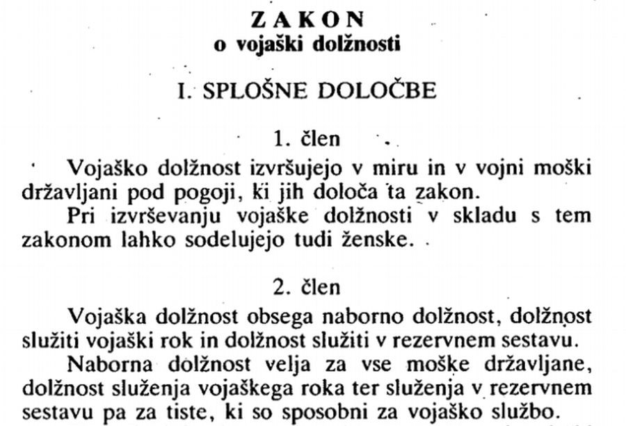 - Zakon o vojaški dolžnosti (Uradni list RS, št. 18/91).
