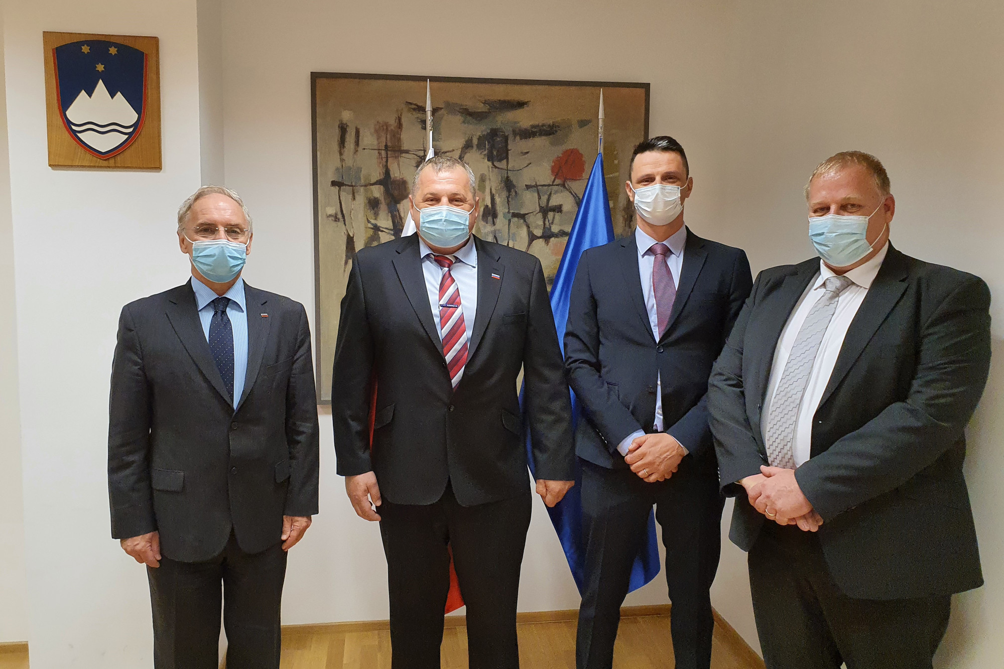Minister za notranje zadeve Aleš Hojs je danes sprejel višjega policista specialista Roberta Zajca, ki je 30. marca 2021 onesposobil napadalca, ki je želel izvesti napad z motorno žago na državni zbor.
