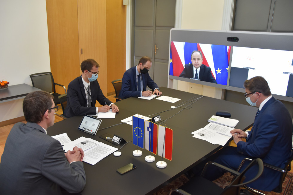 Pogovor državnega sekretarja Dovžana z ministrom za evropske zadeve Poljske Szymańskim
