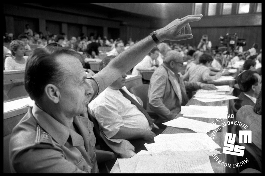 Na ta dan je v medijih še vedno odmevala nedavna skupščinska razprava o novih državnih simbolih, ki niso dobili zadostne podpore poslank in poslancev, zato je kazalo, da nova država ob svojem nastanku sploh ne bo imela lastnega grba in zastave. Velik del opozicije se je namreč nerad ločeval od stare zastave z rdečo zvezdo. Poslanec Drago Plešivčnik (SDP) je dan pred tem izjavil: »Takrat, ko je trpela duša slovenskega naroda, takrat ko je hrepenela po svobodi, ko je hrepenela po boljšem življenju, takrat smo se borili pod to zastavo.« Še bolj patetični so bili pozivi Jožeta Smoleta in Milana Aksentijevića, ki sta pozivala k ohranitvi starih simbolov in govorila o napadu na NOB in odmiku od moderne države, ki je bila zgrajena pod peterokrako zvezdo. Velik del opozicije je tudi napovedal, da se bo glasovanja vzdržal, zato je bila seja prekinjena, saj je postalo jasno, da 100. amandma k slovenski ustavi ne bo dobil potrebne dvotretjinske podpore.