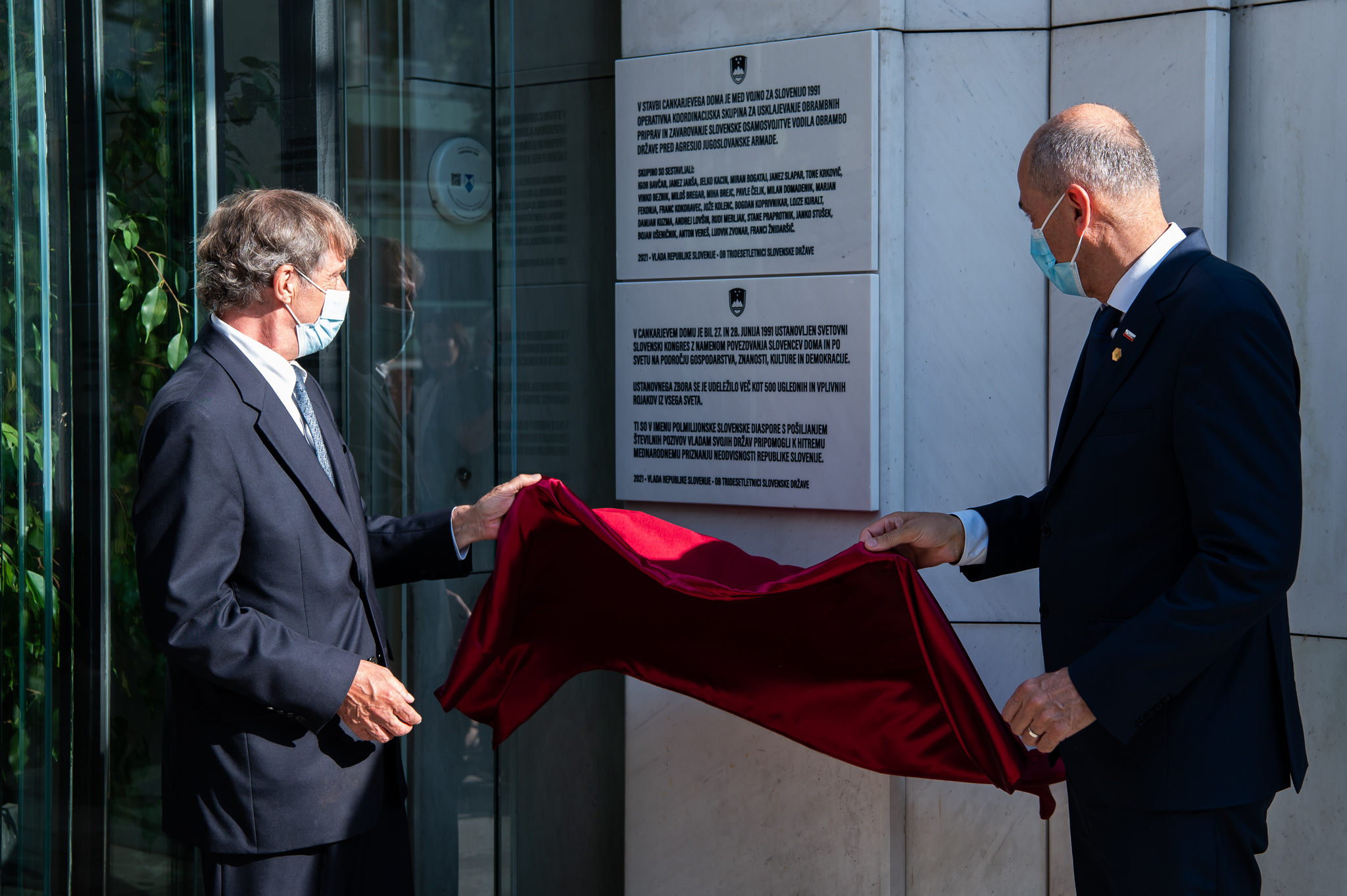 Predsednik vlade je na dogodku slavnostno odkril spominsko ploščo v spomin na pot prizadevanj Svetovnega slovenskega kongresa (SSK), njegovih članov in prijateljev, da so pomagali uresničiti sanje o samostojnosti naše države. Predsednik vlade je ob tej priložnosti prejel tudi zlatnik Svetovnega slovenskega kongresa. Slovenski svetovni kongres podeljuje zlatnik zaslužnim posameznikom in institucijam, ki s svojo dejavnostjo krepijo narodno zavest pri rojakih doma in po svetu in povezujejo Slovence v zamejstvu in po svetu. Kot so izpostavili ob podelitvi zlatnika, se je predsednik vlade Janez Janša že pred osamosvojitvijo povezoval s Slovenci v sosednjih državah in po svetu, zavzemal se je ,da bi začutili, da pripadajo slovenskemu narodu. Predsednik vlade je podpiral organiziranje in ustanavljanje konferenc rojakov doma in po svetu, kar je bil tudi osnovni predpogoj za sklic ustanovnega zbora Svetovnega slovenskega kongresa. Na prireditvi je Svetovni slovenski kongres izrekel zahvalo predsedniku vlade in mu v imenu Slovenk in Slovencev po svetu podelil najvišje priznanje organizacije, ki povezujejo in združuje na temelju vzajemne pomoči Slovencem po svetu.