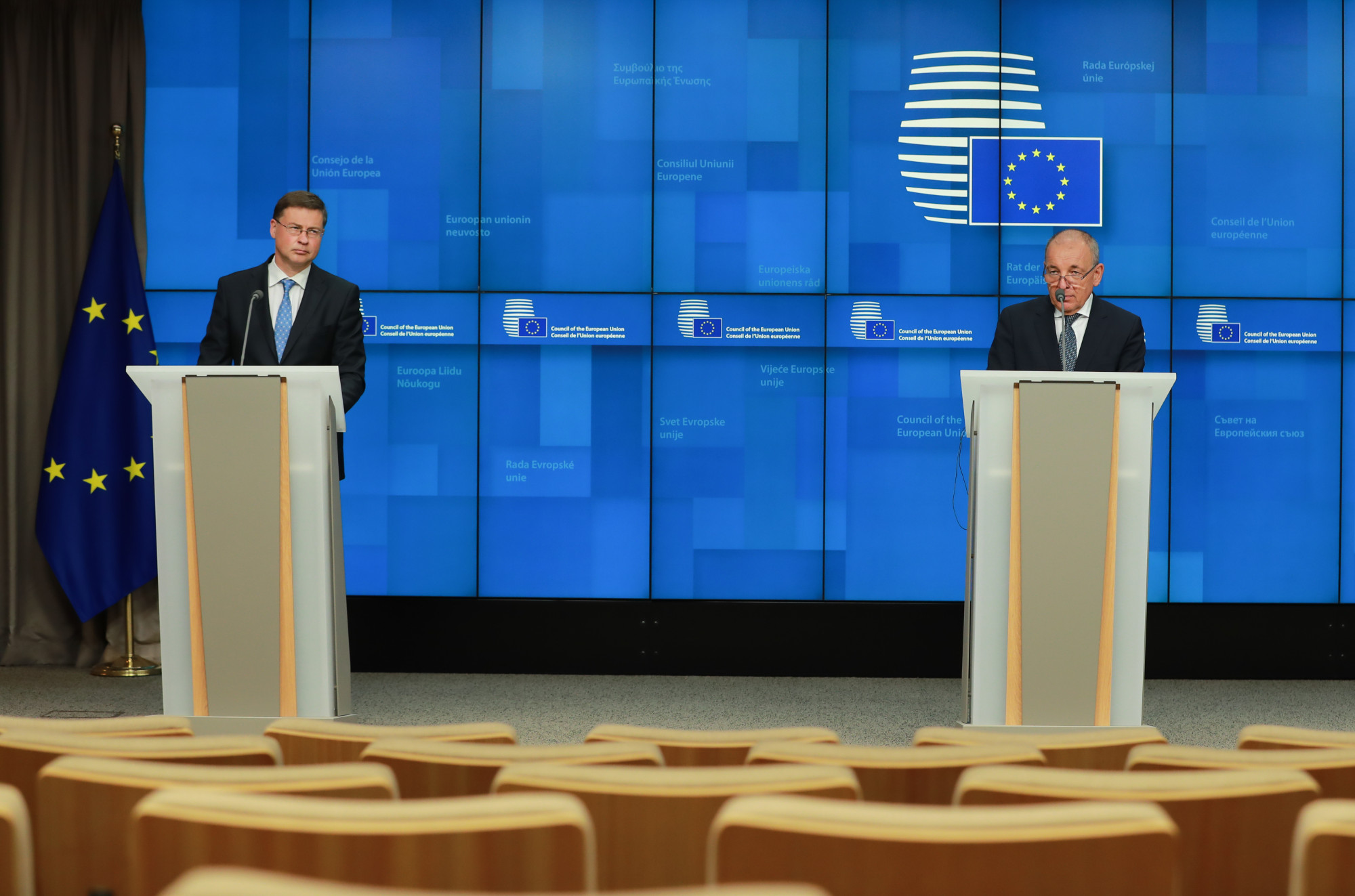 Novinarska konferenca ministra Andreja Širclja in evropskega komisarja Valdisa Dombrovskisa | Avtor: EU