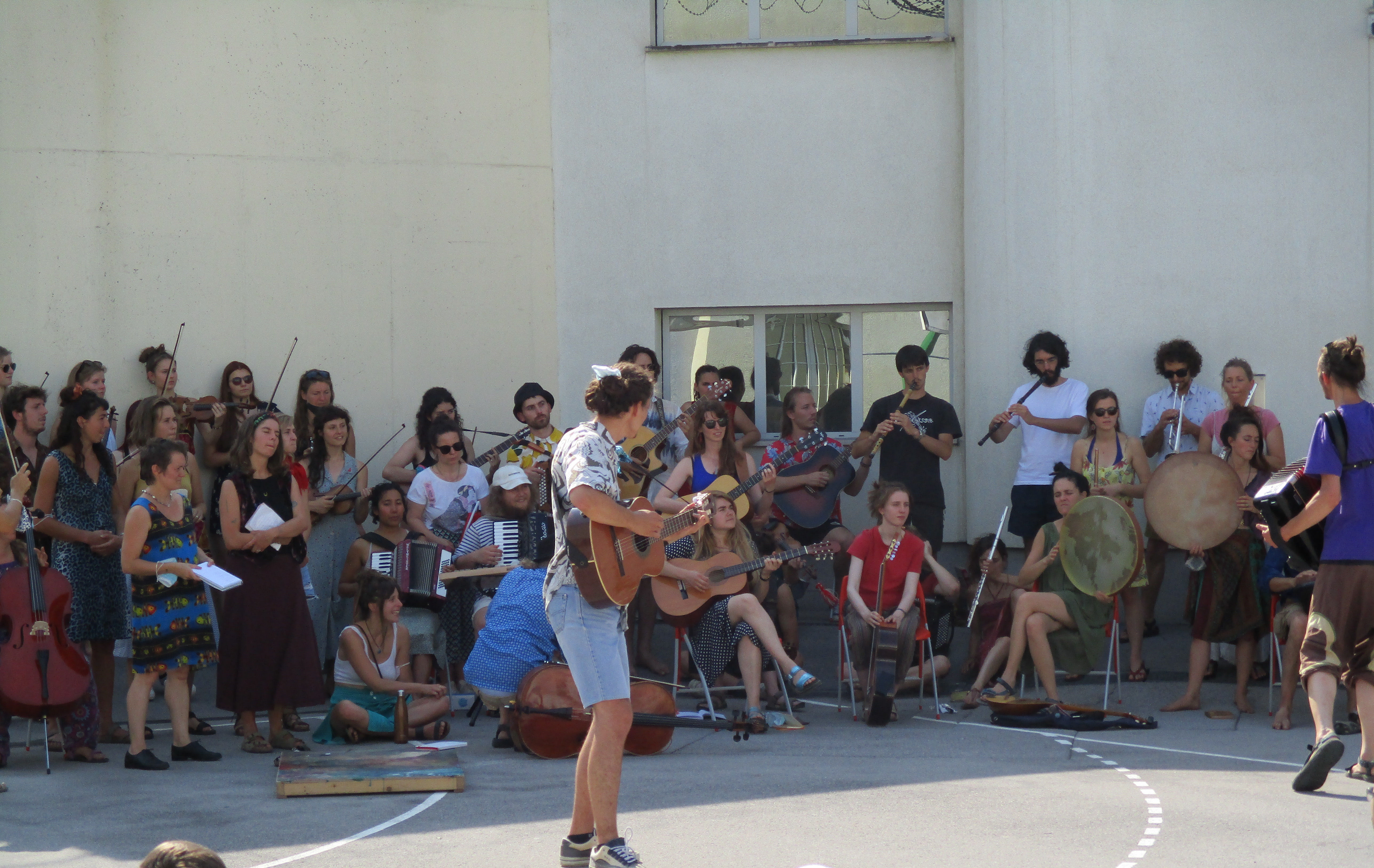 Orkester sestavljajo mladi glasbeniki iz Evrope, ki se že več kot 10 let srečujejo v Slovenski Istri in igrajo ljudsko ter popularno glasbo. Glasbeniki, barviti tudi po stilu oblačenja, so z mešanjem različnih glasbenih slogov, improvizacijo in sproščenostjo navdušili zaprte osebe in jim popestrili včerajšnji popoldanski sprehod. Orkester Etno Histeria je v različnih zasedbah že večkrat obiskal koprski zapor in upamo, da se bo tradicija nadaljevala tudi v prihodnje.