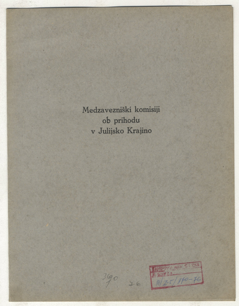 Spomenica in pozdravni dopis Pokrajinskega narodnoosvobodilnega odbora za Slovensko primorje in Trst Medzavezniški razmejitveni komisiji