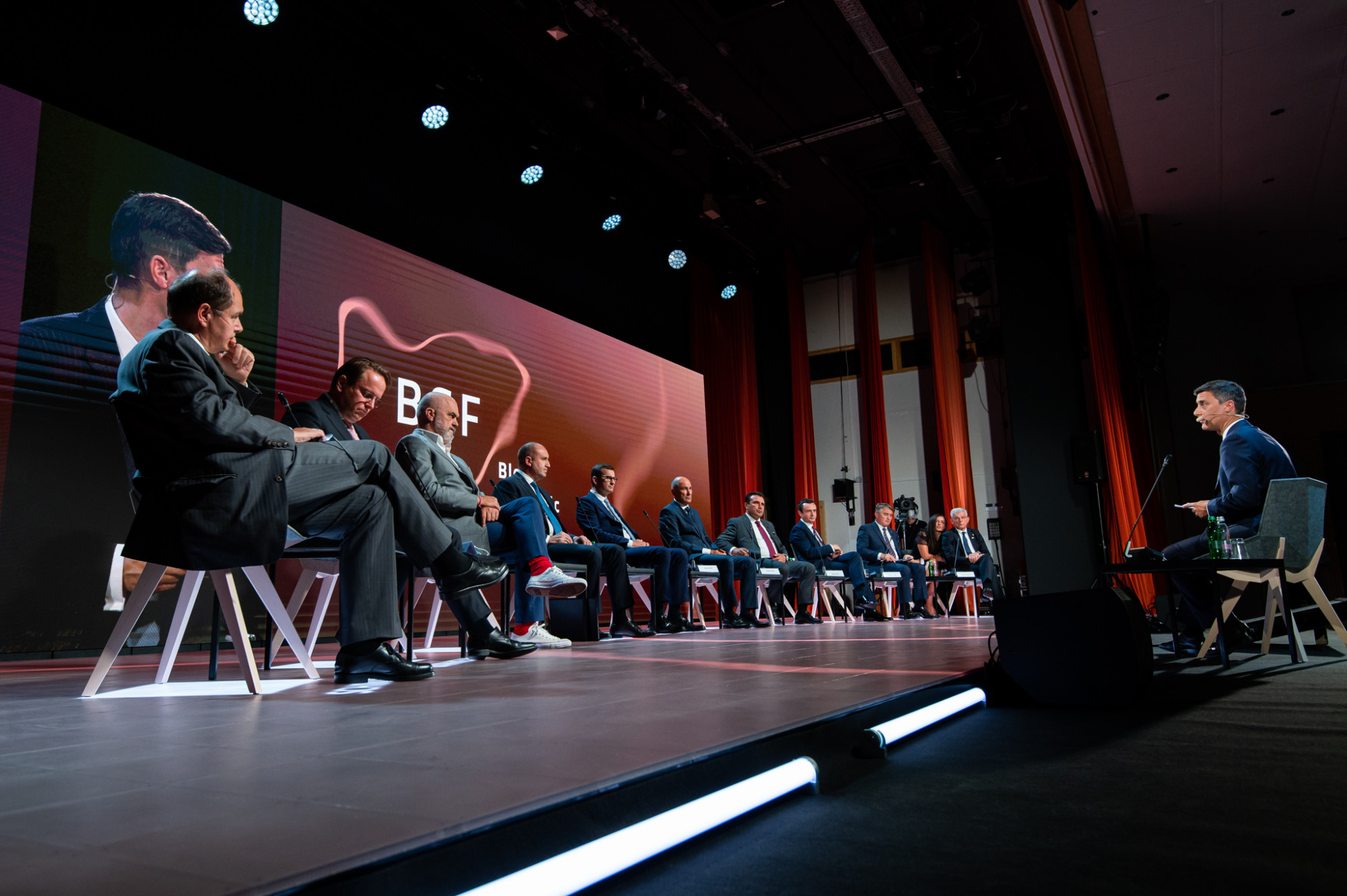Predsednik vlade Janez Janša je v popoldanskem delu Blejskega strateškega foruma sodeloval na panelu voditeljev, ki je bil namenjen razpravi o vprašanju širitve EU na Zahodni Balkan. | Avtor: KPV