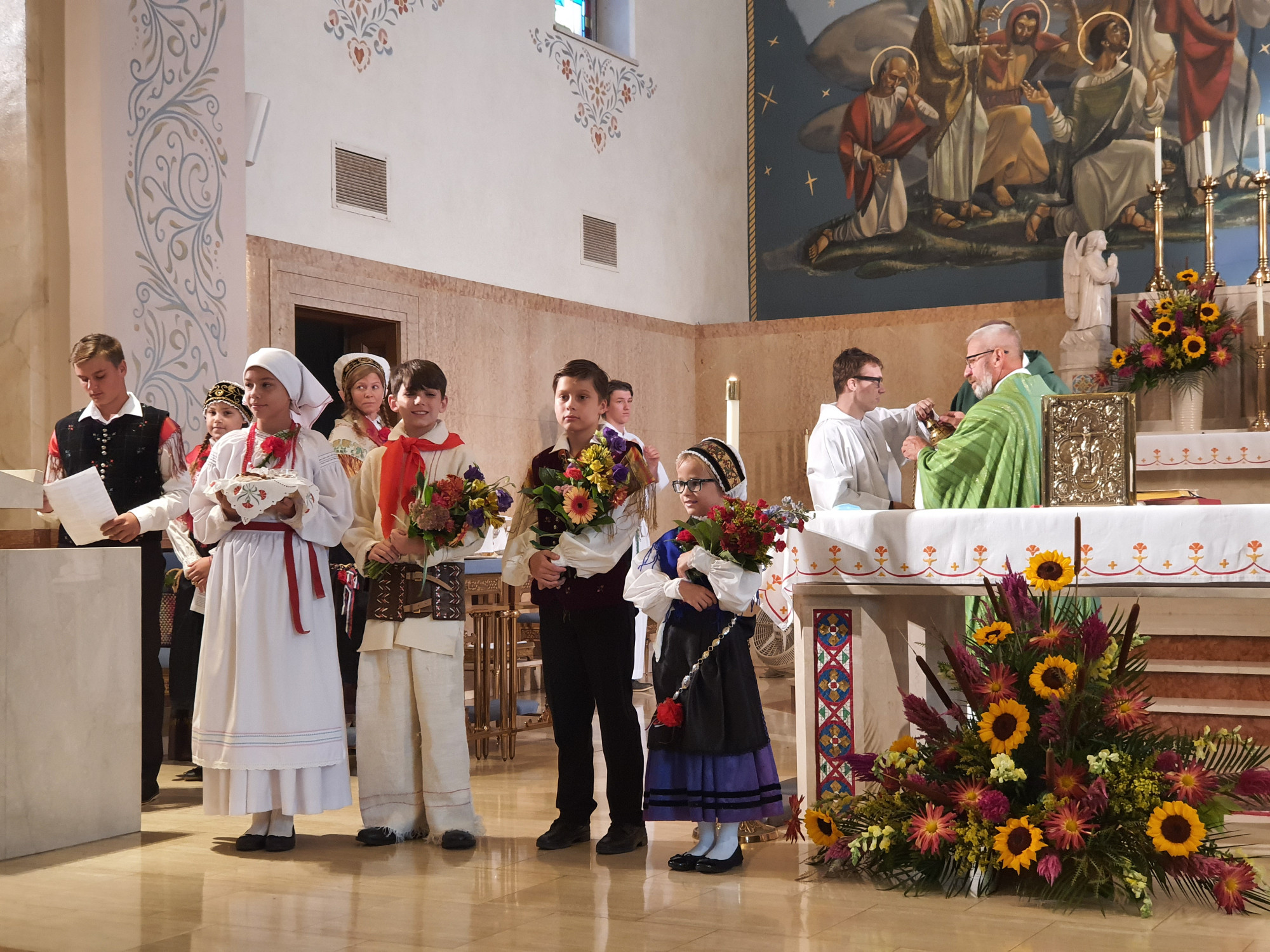 V družbi narodnih noš pred slovensko mašo. | Avtor: USZS